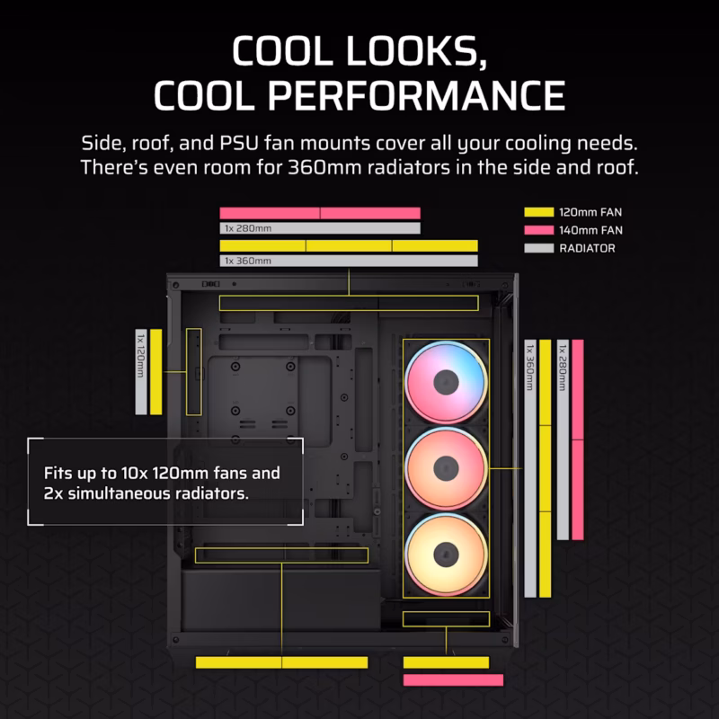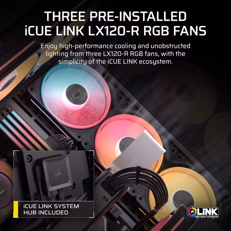 3500X LX-R RGB iCUE LINK Tempered Glass Mid-Tower PC Case; 3x Fans included; 2x 2.5” ; 2x 3.5”; Black