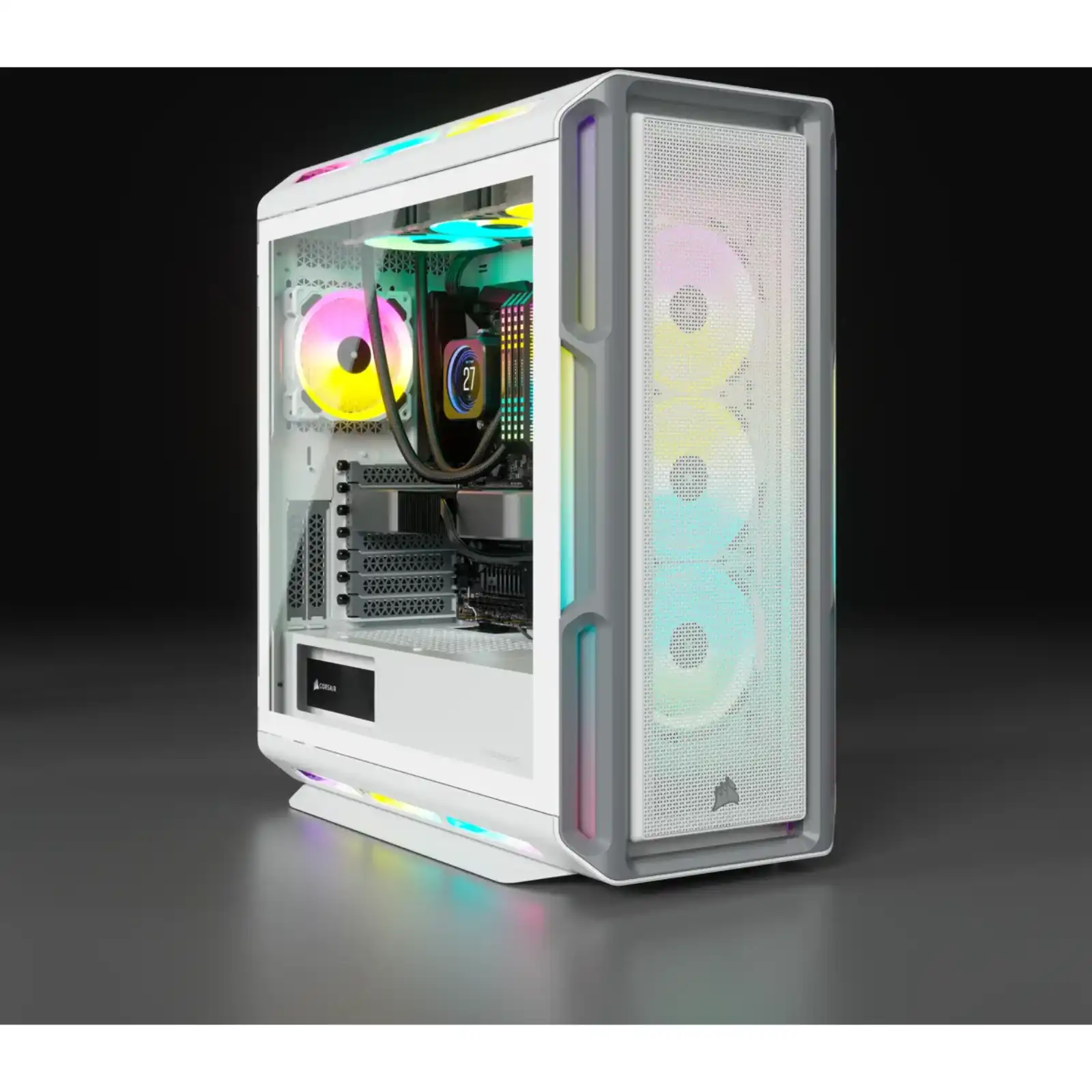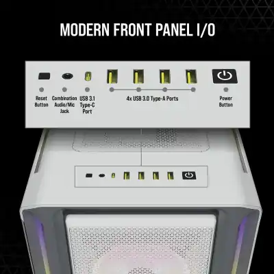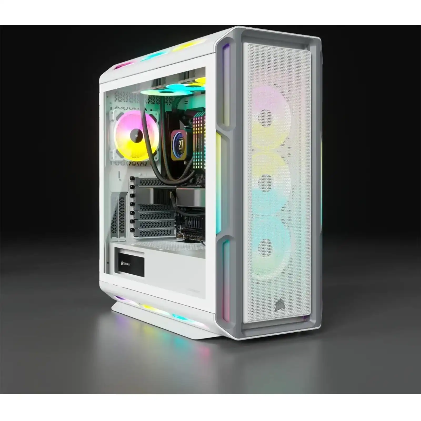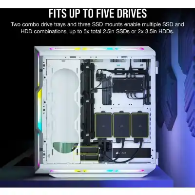 5000T RGB White Tempered Glass Mid-Tower; 2x 3.5” | 4x 2.5” Drive Bays; Up to 360mm Radiator compatible; 4x 120mm fan incl