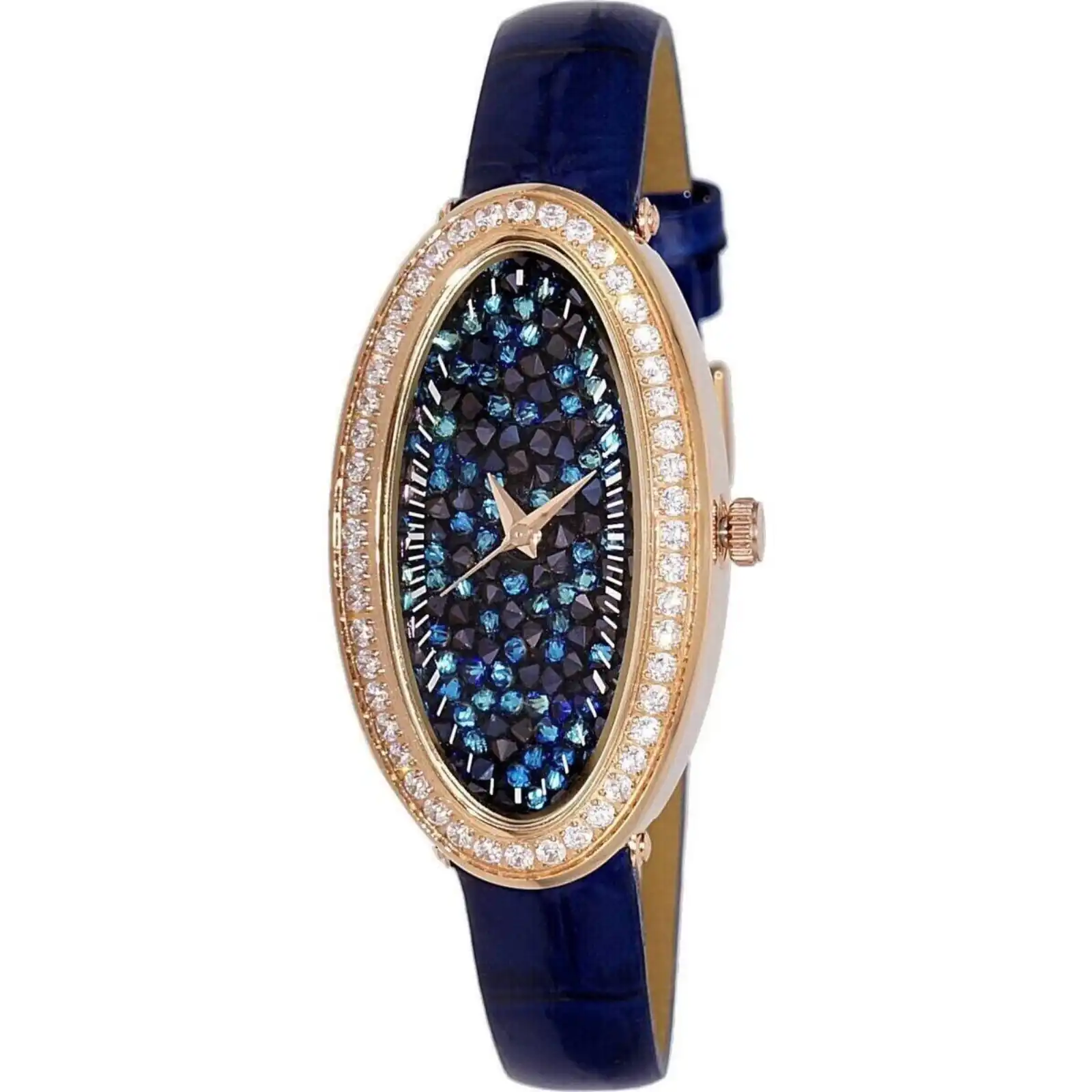 Adee Kaye Aura Collection Crystal Accents Blue Dial Quartz AK2523-LR GBU Women’s Watch