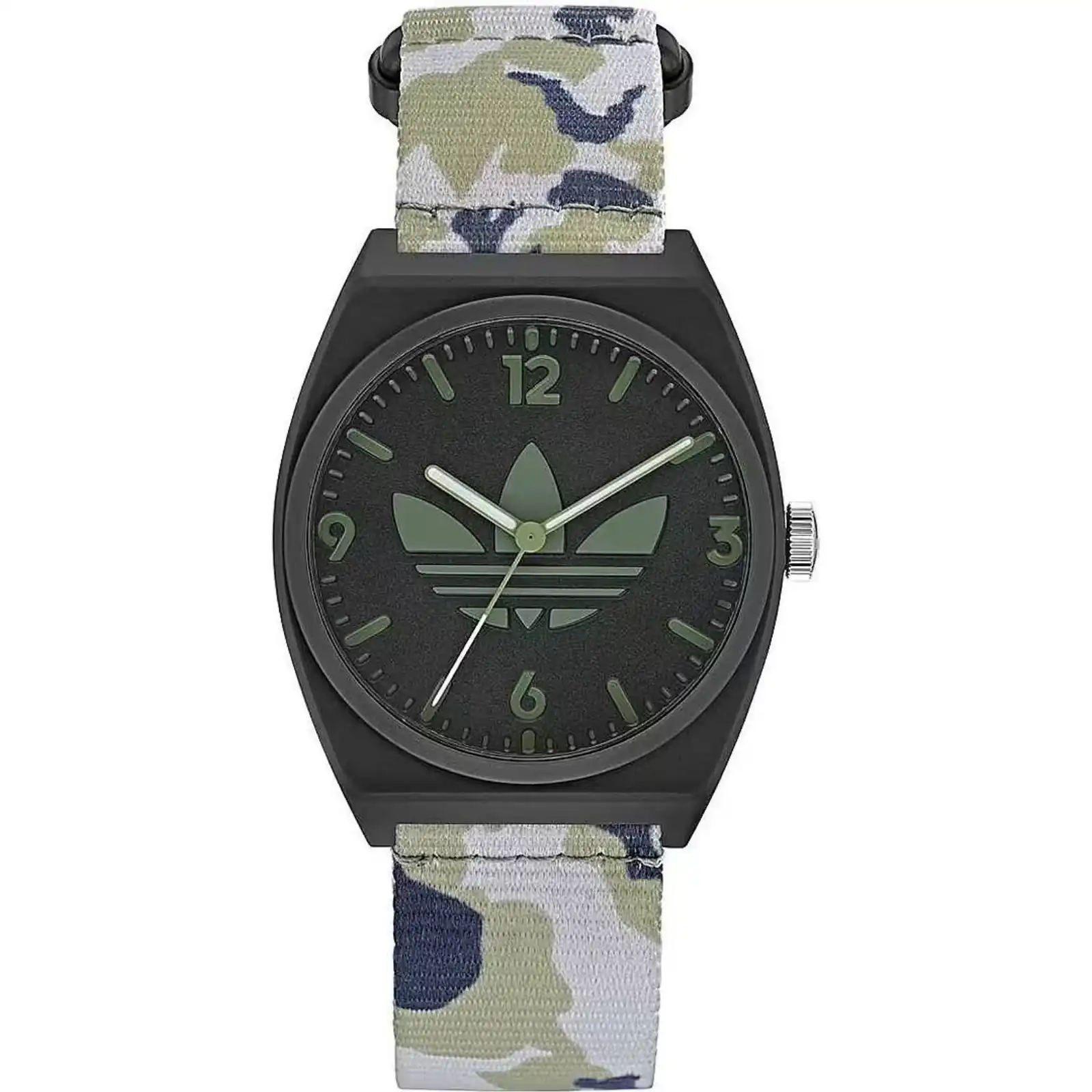 The Adidas Originals AOST22040 from the Project Two collection is a definitive study in “Rugged Minimalism.” Combining a lightweight Black Resin case with a high-impact Camo-Print Nylon strap, this 38mm unisex timepiece is engineered for the modern individual who seeks a bold, utilitarian anchor for their contemporary wardrobe.