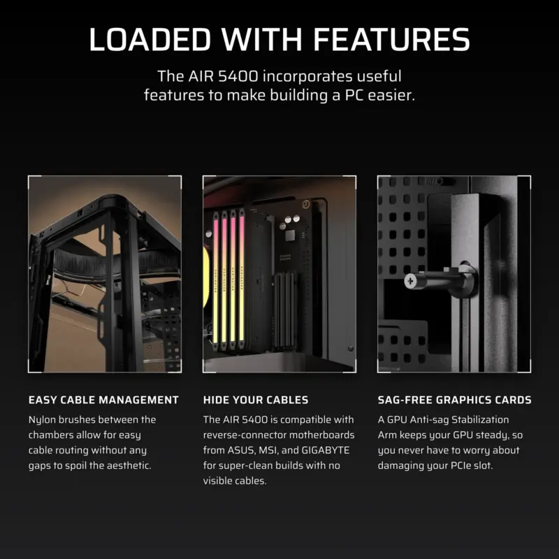 AIR 5400 LX-R RGB iCUE LINK Triple Chamber Mid-Tower PC Case ;3x Fans included;2x 2.5” ; 1x 3.5”; Black