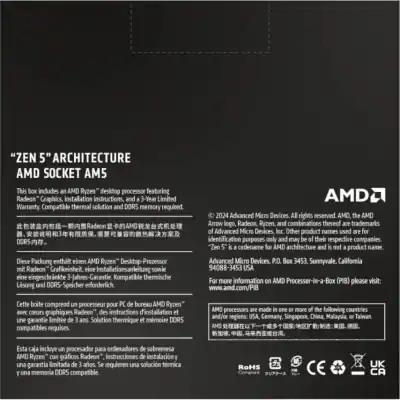 AMD Ryzen 7 9700X 8-Core/16-Threads;Socket AM5;Base Clock 3.8GHz; Max Boost 5.5 40MB Cache;65W Processor with Radeon GraphicsBOX