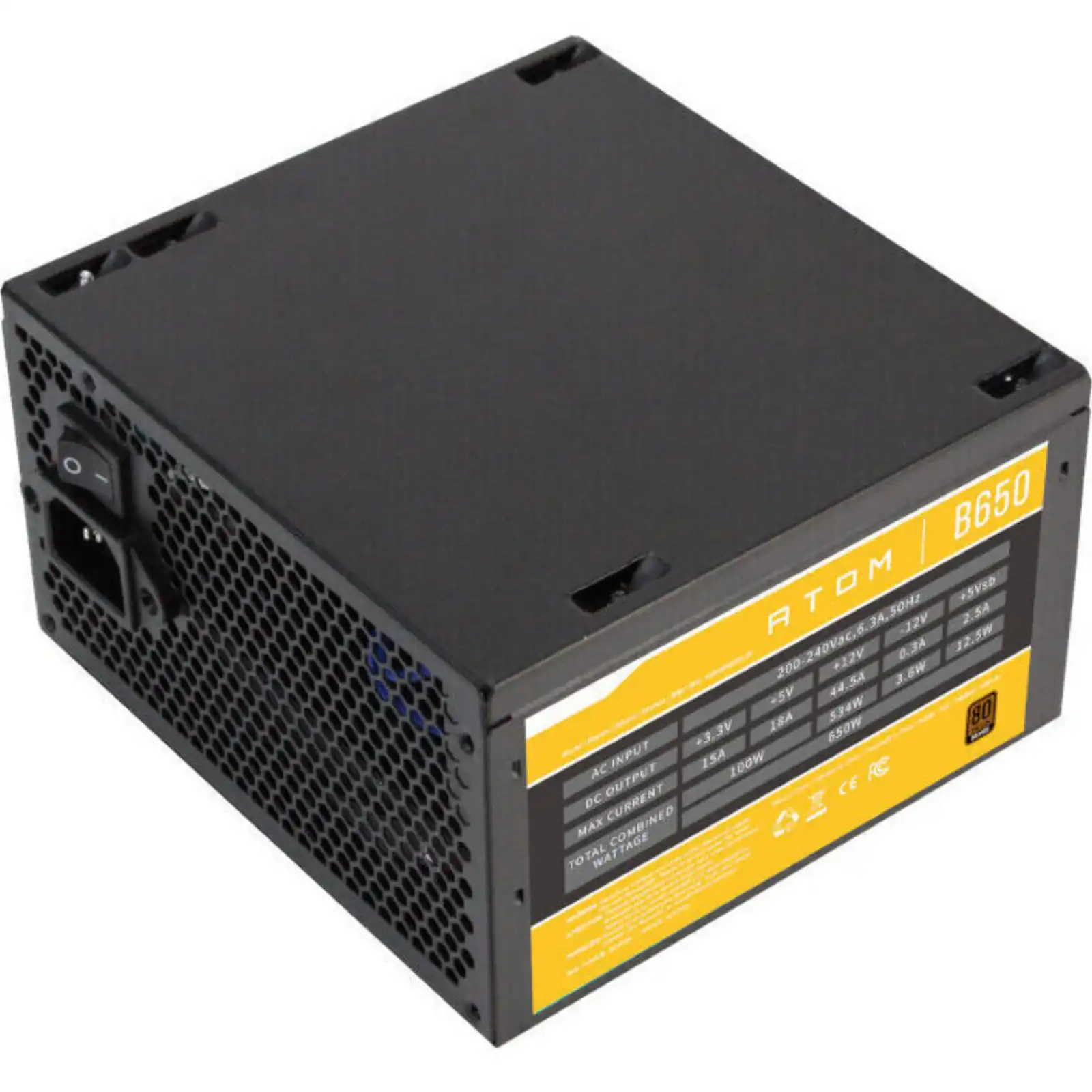 Antec’s new generation of Atom Bronze power supplies is crafted for quality, efficiency, and performance. Featuring 80 PLUS® BRONZE certification, and a quiet 120 mm silent fan. The 120mm silent fan is ideal for quiet computing and is designed for longer life, guaranteeing hours of reliable operation. The Atom B650 utilizes Active PFC and provides efficiency during max and low loads – living up to the performance standards that we are known for. For safety, the CircuitShield™ suite of industrial-grade protections ensures that the power delivered to your system is safe and reliable in any environment. The Antec Atom B650 80PLUS Bronze ATX Power Supply is the power supply you won’t want to miss out on.