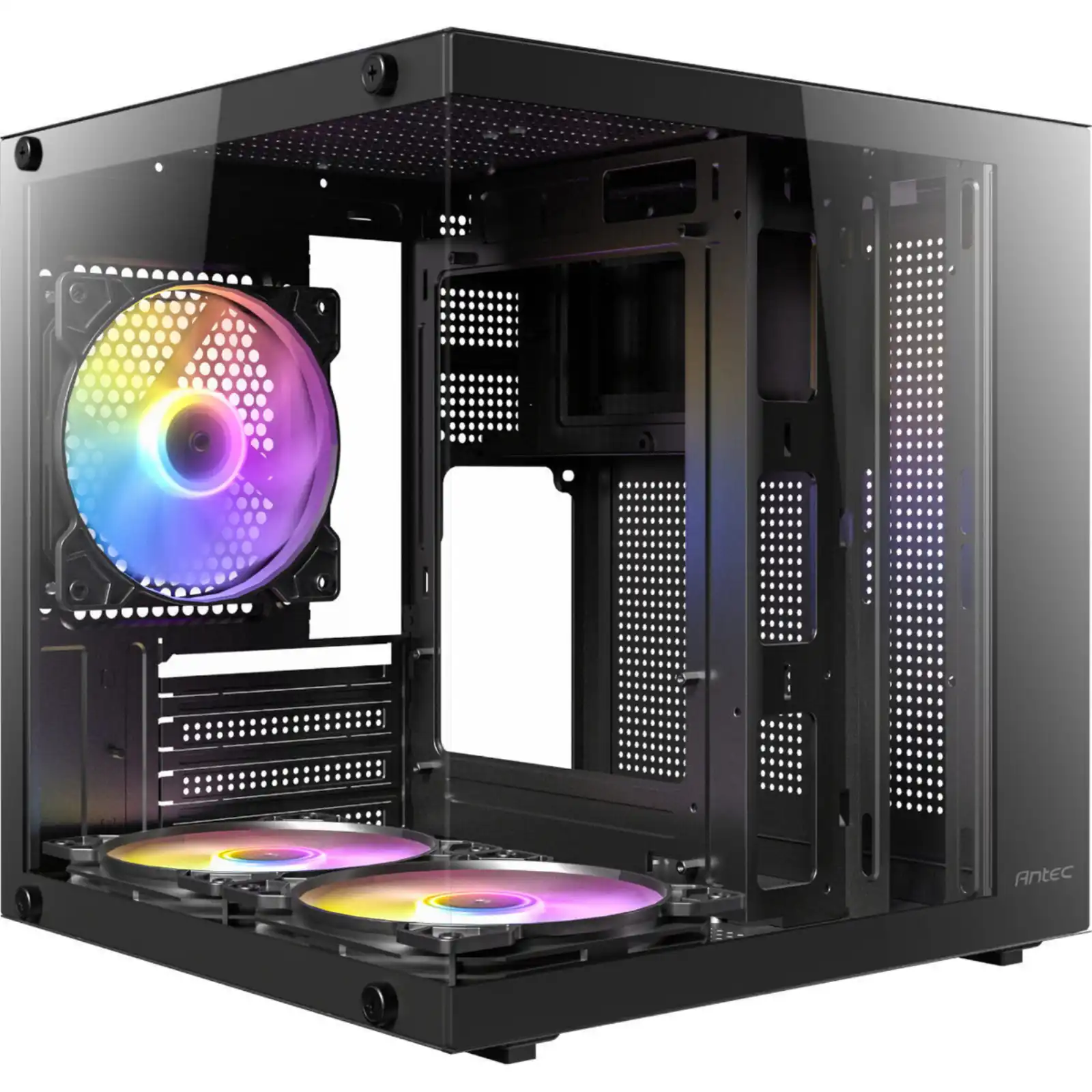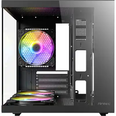 The Antec VCX10M RGB Mini-Tower Gaming Chassis is purpose-built for gamers and PC enthusiasts seeking a compact yet performance-driven case. Designed to accommodate Micro-ATX and Mini-ITX motherboards, the VCX10M offers exceptional cooling and component compatibility in a space-saving footprint. With a sleek 270° panoramic glass panel design across the front and side, this chassis puts your build on full display while adding a touch of modern elegance to any setup.