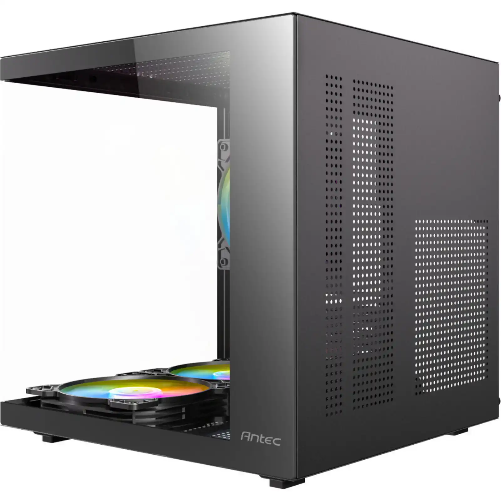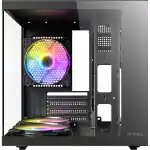 Despite its smaller size, the VCX10M doesn’t compromise on functionality. With support for GPUs up to 260mm in length, CPU coolers up to 165mm, and PSUs up to 190mm, it delivers versatile hardware compatibility for gaming and productivity builds. The front I/O panel includes USB 3.0, USB 2.0, LED control, and HD audio, providing convenient access to your essential peripherals. Finished with tempered glass panels, a top-mounted dust filter, and modern RGB accents, the Antec VCX10M strikes the perfect balance between compact design, cooling efficiency, and visual appeal.