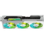 Cooling is optimized with a triple-fan design, ensuring efficient heat dissipation for sustained peak performance. ASRock’s Striped Ring Fans increase lateral intake and improve airflow, while V-shaped cutting fins and air vents guide air through the reinforced metal frame and stylish backplate, further enhancing cooling efficiency. Additionally, the premium thermal pads, precision-mounted heatsink, and consolidated heat pipes ensure optimal contact and heat transfer, keeping the GPU cool even under intense gaming loads.