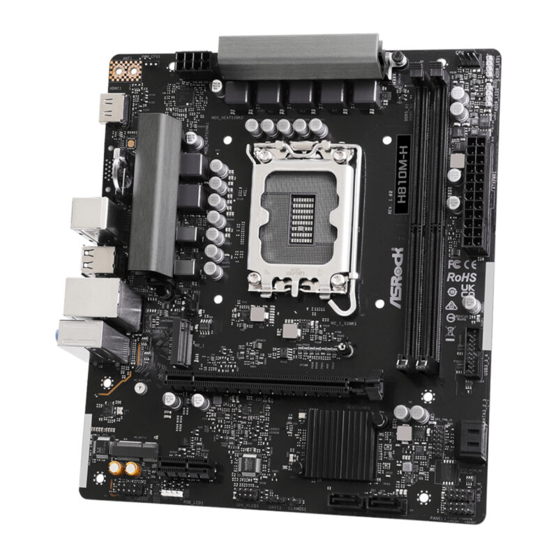 With its Micro ATX form factor, the ASRock H810M-H strikes the perfect balance between size and functionality. Ideal for smaller cases, this micro ATX motherboard doesn’t compromise on features, offering ample connectivity and expansion options for a versatile computing experience.