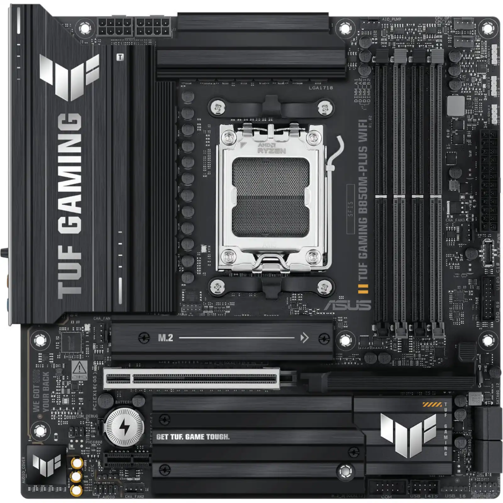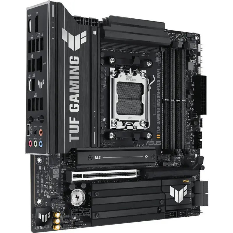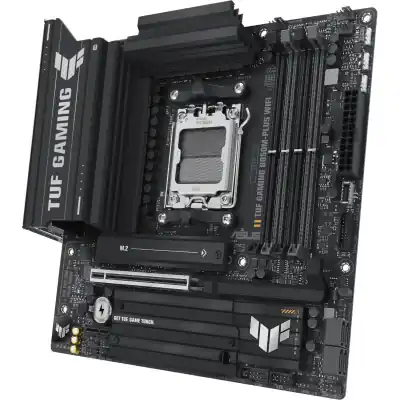 The ASUS TUF Gaming B850M-PLUS WIFI motherboard is engineered for gamers seeking peak performance and unwavering reliability. This Micro ATX ASUS AM5 Motherboard, built around the cutting-edge AMD B850 chipset, supports AMD Ryzen 9000, 8000, and 7000 Series processors, providing exceptional speed and stability for both intense gaming sessions and demanding content creation tasks.