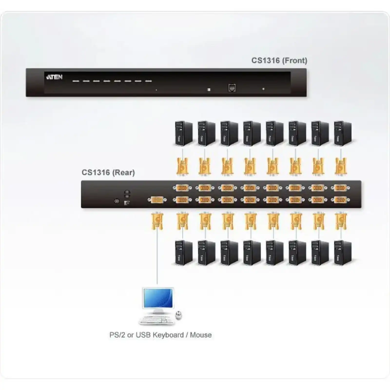 ATEN 16-Port PS/2-USB VGA KVM Switch/Cascade/W/(US/EU/OUT) ADP. ATEN