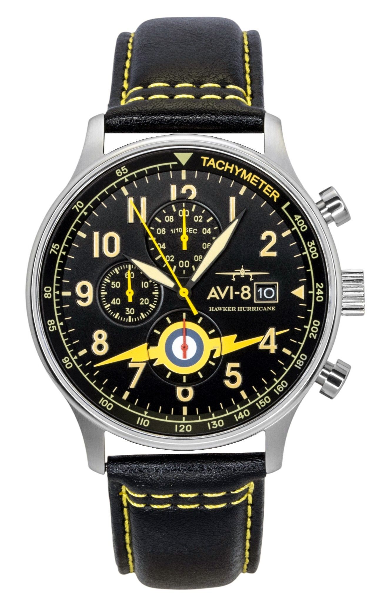 AVI-8 Hawker Hurricane Classic Chronograph Leather Strap Black Dial Quartz AV-4011-0Z Men’s Watch With Extra Strap