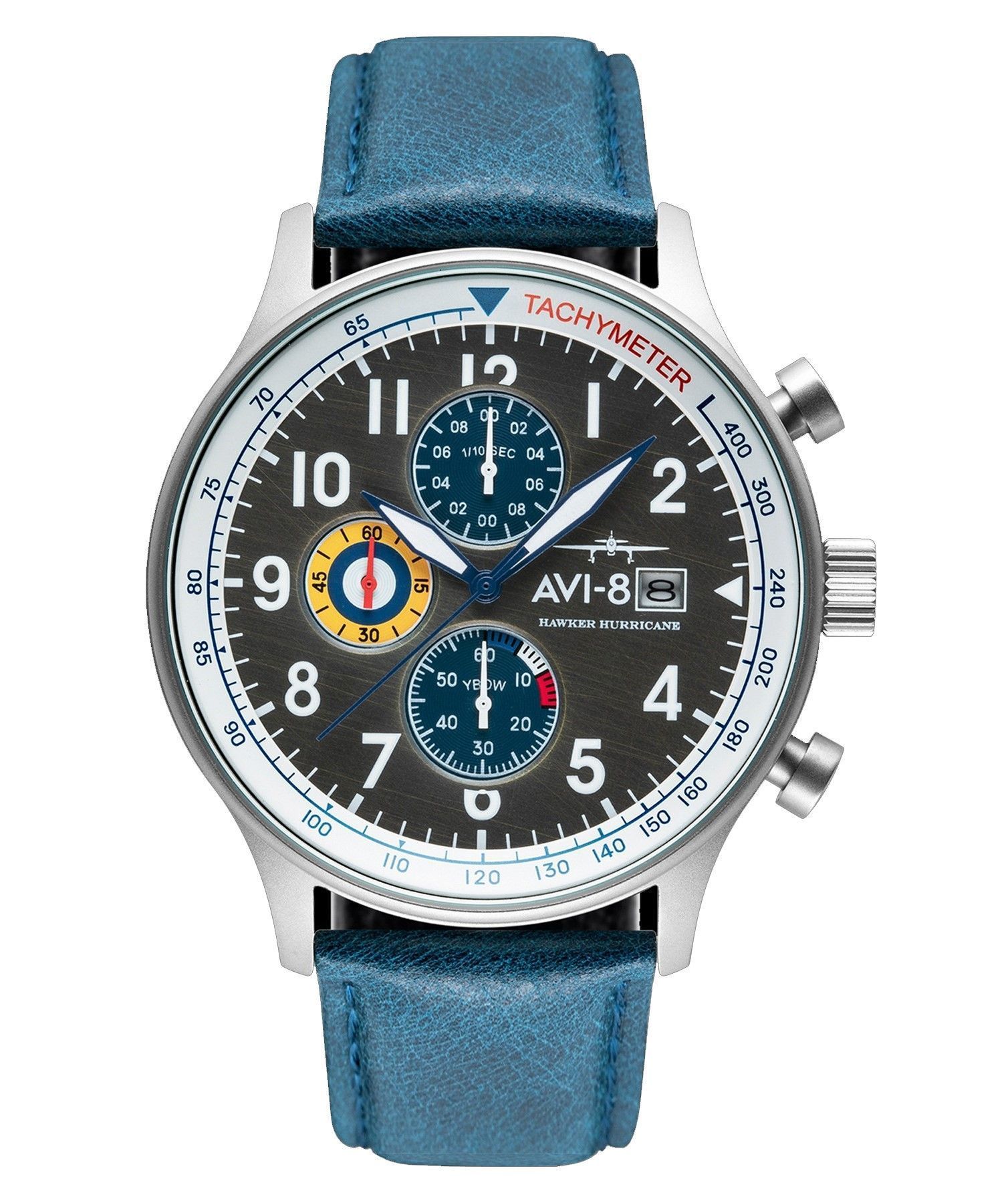 Sale!AVI-8 Hawker Hurricane Classic Chronograph Pennant Blue Leather Strap Grey Dial Quartz AV-4011-0F Men’s Watch