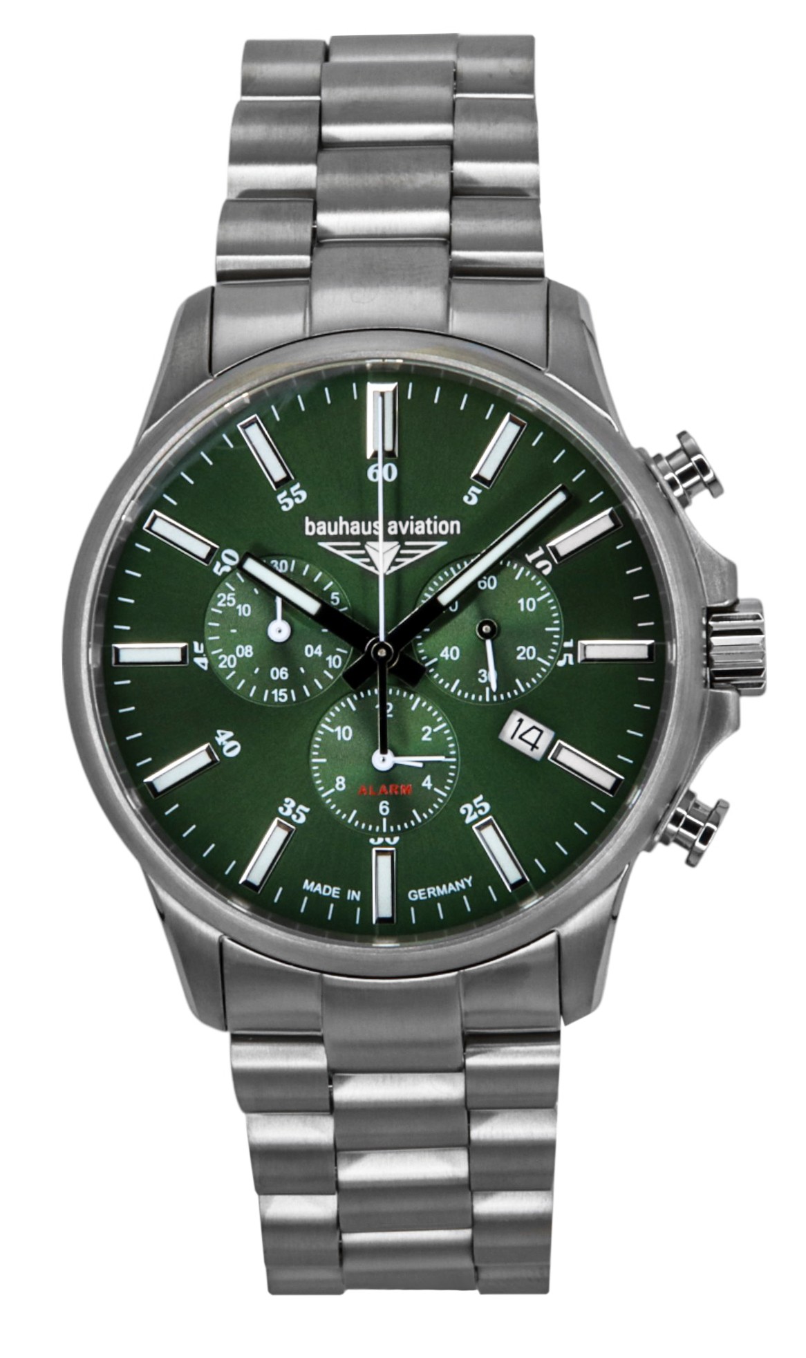 Bauhaus Aviation Chronograph Titanium Green Dial Quartz 2880M4 100M Men’s Watch