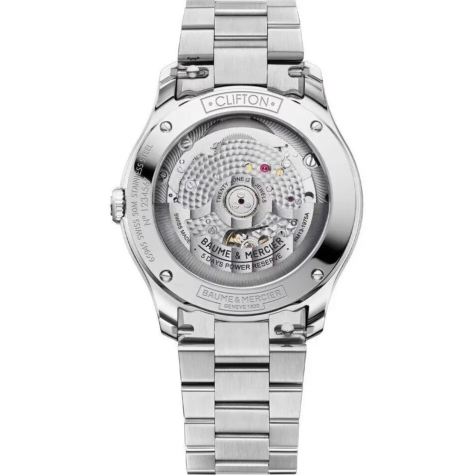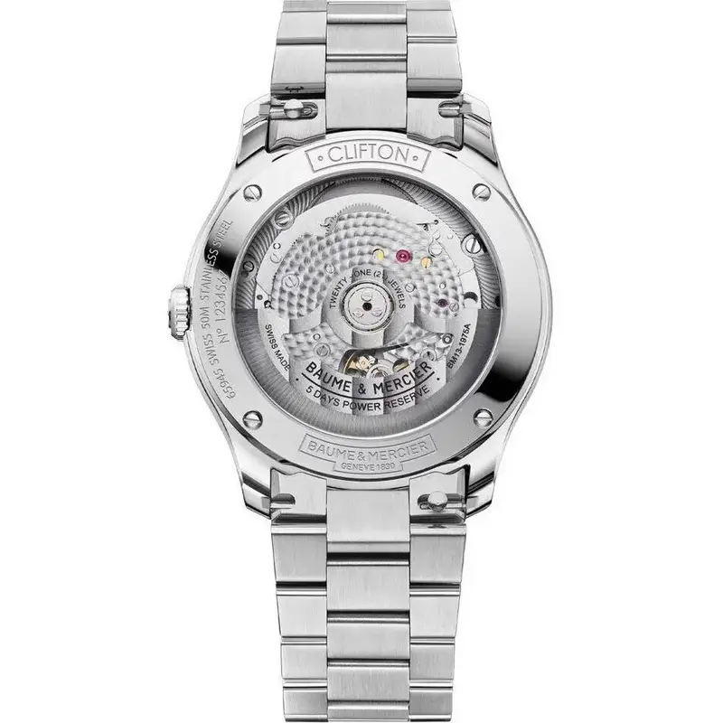 - Magnetic Resistance: In a world filled with smartphones, tablets, and magnetic clasps, the Baumatic movement is engineered to resist everyday magnetic fields up to 1,500 Gauss, ensuring the watch maintains its chronometric precision.