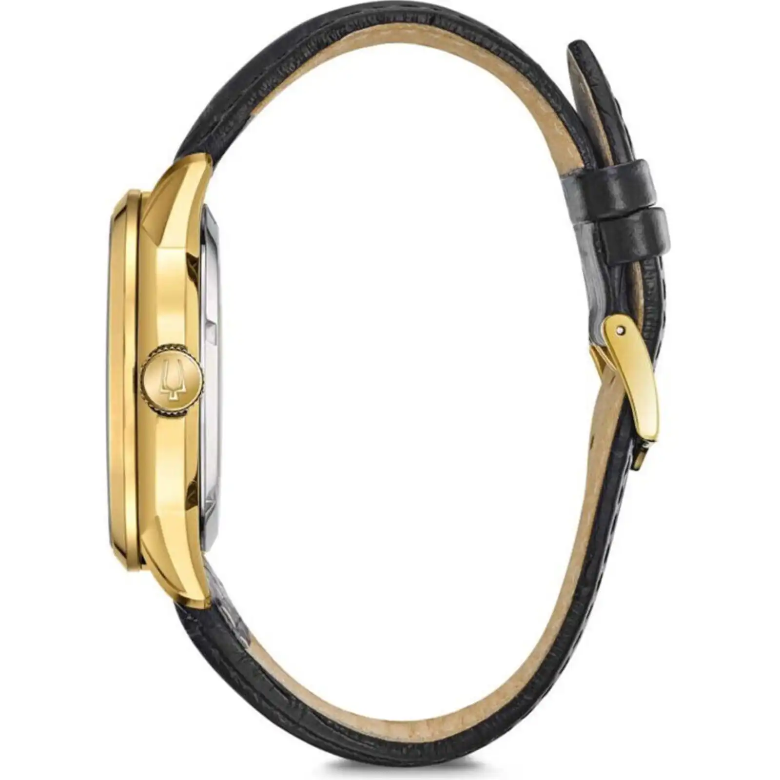 Gold Tone Stainless Steel Case Leather Strap Automatic Movement Domed Mineral Crystal 21 Jewels Skeleton Dial White Dial Analog Display Luminous Hands See Through Case Back Buckle Clasp 30m Water Resistance