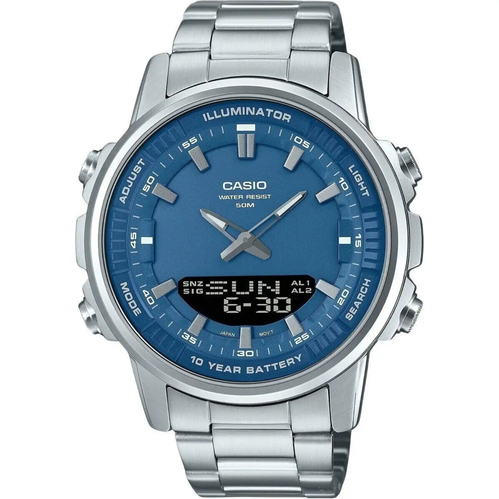 Casio Analog Digital Combination Stainless Steel Blue Dial Quartz AMW-880D-2A1V Men’s Watch