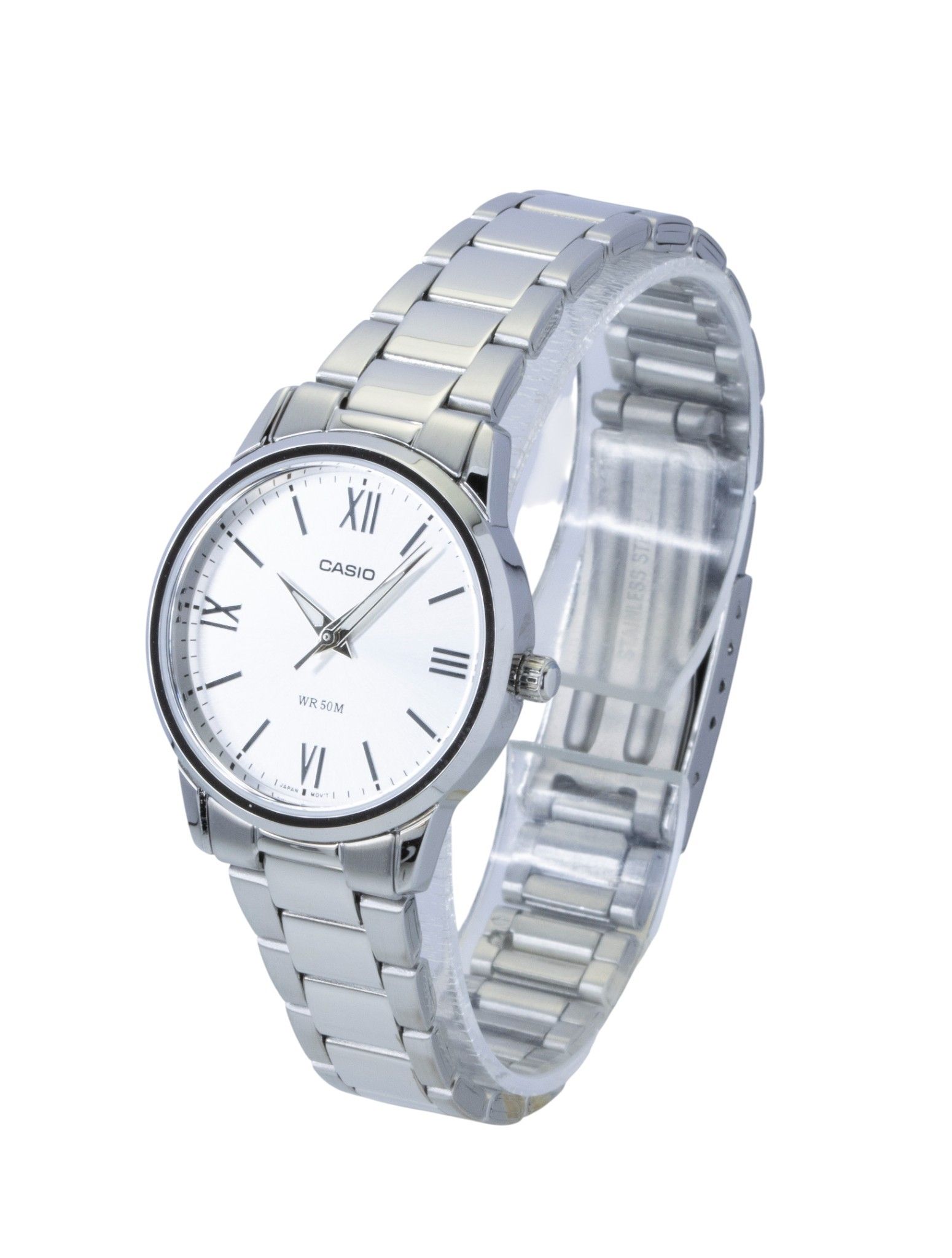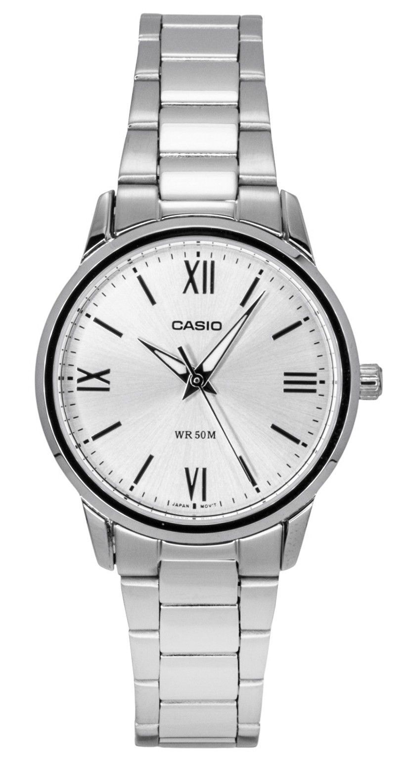 Casio Analog Stainless Steel Silver Dial Quartz LTP-1303DD-7AV Women’s Watch offers a timeless design with its elegant silver dial, complemented by sleek black markers for easy readability. The stainless steel case provides both durability and a refined shine, making this timepiece perfect for everyday wear or special occasions. Powered by reliable quartz movement, it ensures precise timekeeping with minimal maintenance. The polished finish and sophisticated design make it an ideal accessory for women who appreciate both style and functionality in their wristwear.