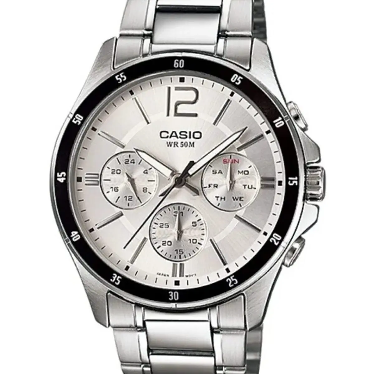 WR: 5 ATM – Case: 43,5 mm – Gender: Gent – Case Material: Stainless Steel – Strap Material: SS Bracelet – Movement: Quartz – Functions: Multifunction – Glass: Mineral – Product Type: Wristwatch – Packaging: Official Box