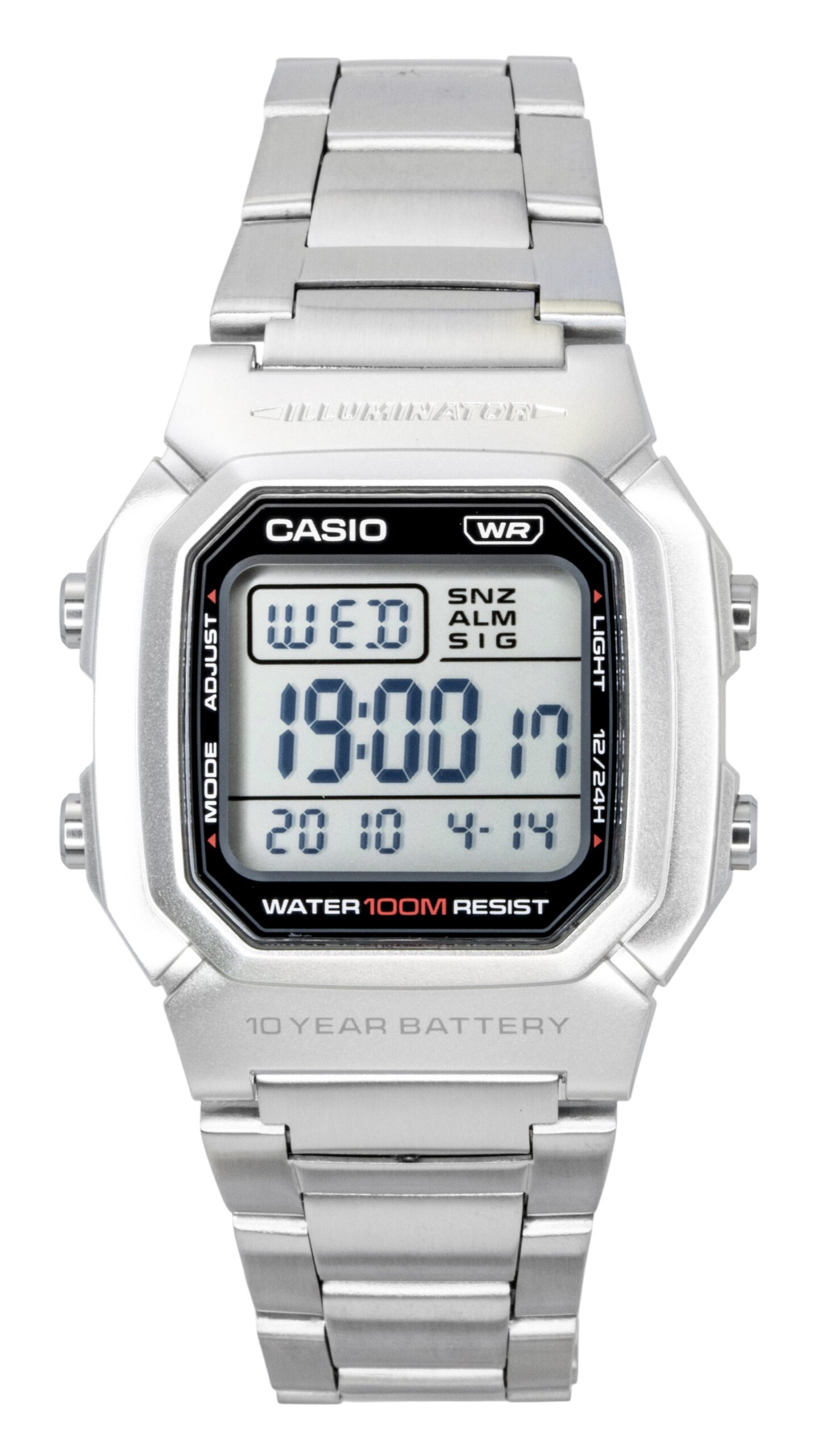 Casio Digital Stainless Steel Bracelet Quartz W-800HD-1AV 100M Men’s Watch