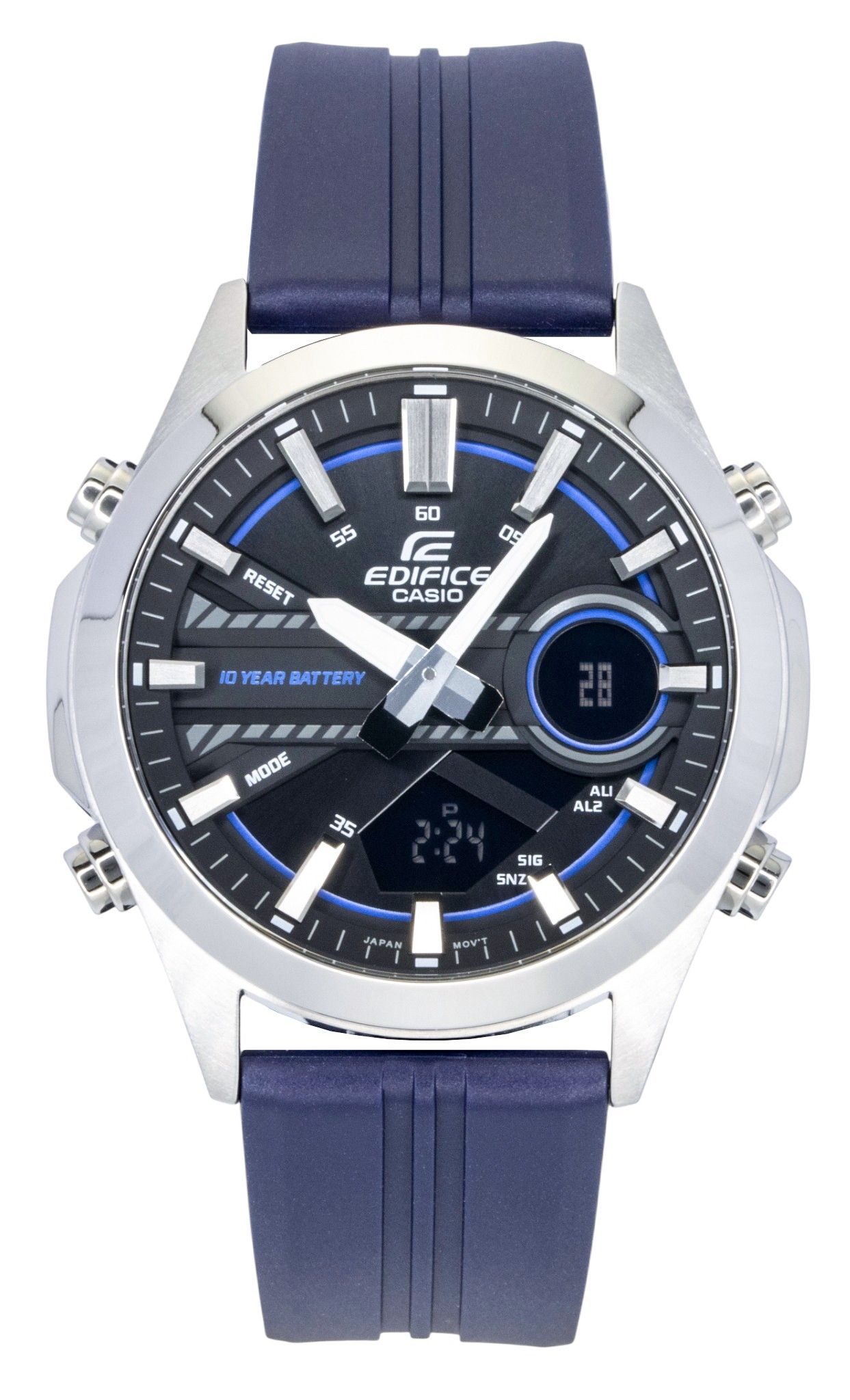 The Casio Edifice EFV-C120P-1A2 offers a perfect fusion of style and function with its dual analog-digital display. Featuring a durable resin strap and 100-meter water resistance, this watch is ready for any challenge, from everyday wear to active pursuits. Its precision quartz movement ensures accurate timekeeping, making it ideal for those who appreciate both reliability and design. Whether you’re looking for automatic watches or reliable quartz men’s watches, the EFV-C120P-1A2 stands out as a solid choice for those seeking practicality and elegance in one timepiece.