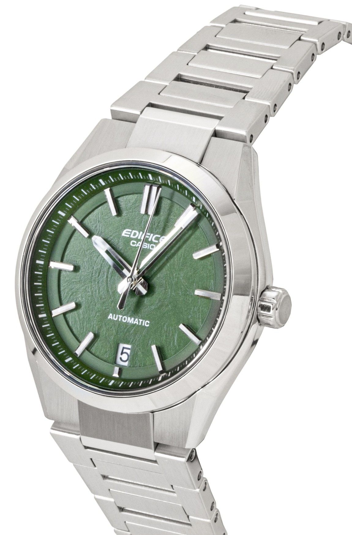 Casio Edifice Analog Stainless Steel Forged Carbon Green Dial Automatic EFK-100D-3A 100M Men’s Watch merges modern style with rugged durability. The unique forged carbon dial offers a tough yet sophisticated look, while the rich green color adds a bold touch. With a 100-meter water resistance, this watch is designed to withstand both everyday wear and outdoor activities. Powered by automatic movement, it eliminates the need for batteries while providing precise timekeeping. The stainless steel case ensures durability and strength, making this timepiece ideal for men who appreciate both style and functionality in one accessory.