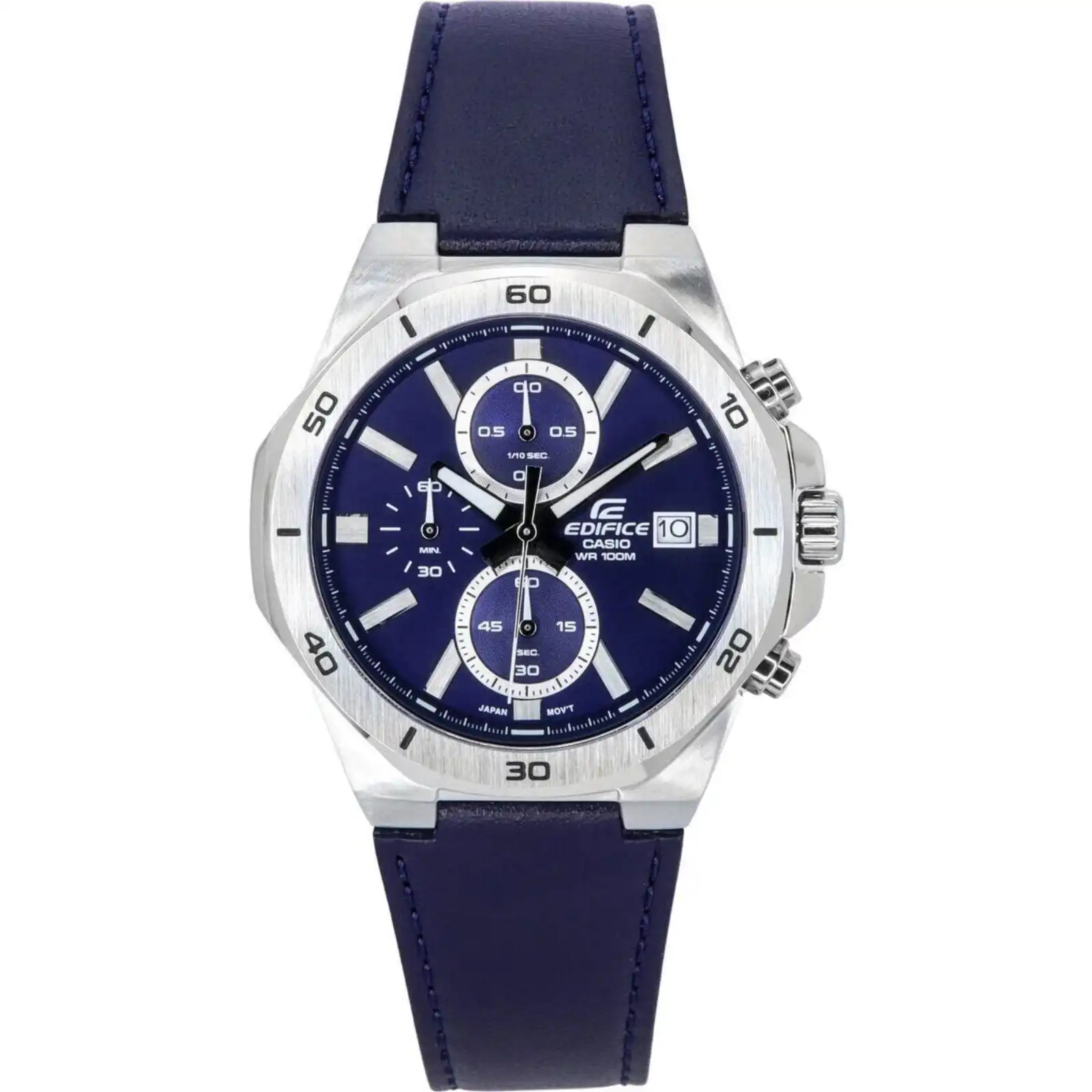 Casio Edifice Standard Chronograph Leather Strap Blue Dial Quartz EFV-640L-2A 100M Men’s Watch