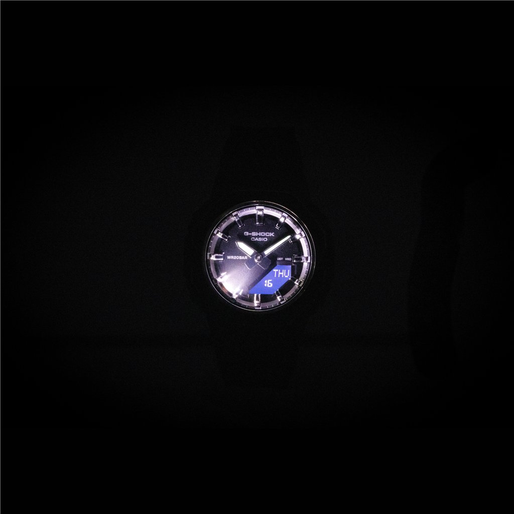 The Casio G-Shock GMA-P2110-1A is designed to withstand the toughest challenges, offering both resilience and style. Its bio-based resin strap is a testament to sustainability, while the 200-meter water resistance makes it ideal for those who love adventure, whether on land or in water. The watch combines analog and digital displays, making it versatile for all occasions. With its robust build and precise functionality, this G-Shock model is the perfect choice for those seeking durable automatic watches or quartz men’s watches with a unique edge.