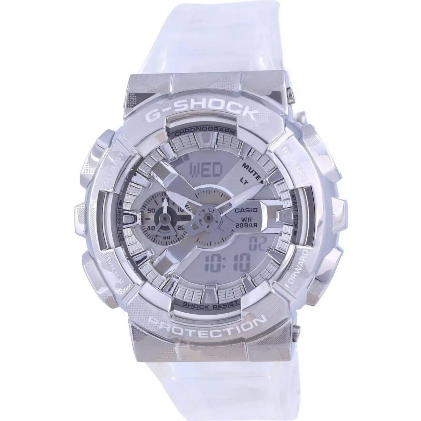 Resin Case Resin Strap Mineral Crystal Silver Dial Analog Digital Display Neobrite Magnetic Resistant Shock Resistant LED Light World Time 1/100 Second Stopwatch Countdown Timer Alarms Hourly Time Signal Full Auto Calendar 12/24 Hours Display Luminous Hands Day And Date Display Screwed Case Back Buckle Clasp 200m Water Resistance