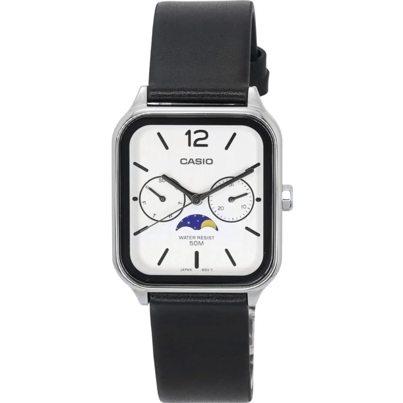 Casio Standard Analog Moon Phase Leather Strap White Dial Quartz MTP-M305L-7A Men’s Watch