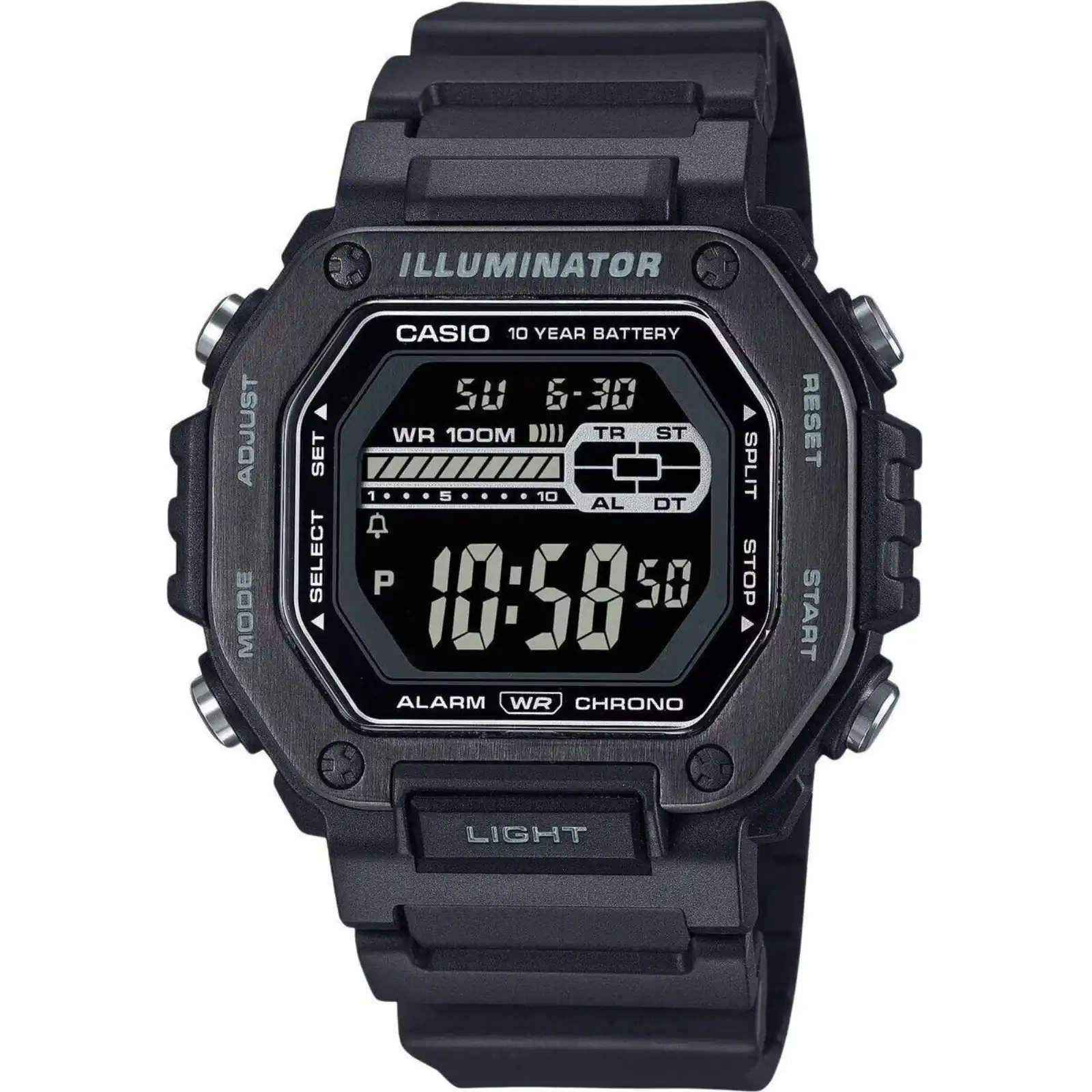 Casio Standard Digital Black Resin Strap Blue Dial Quartz MWD-110HB-1BV 100M Men’s Watch