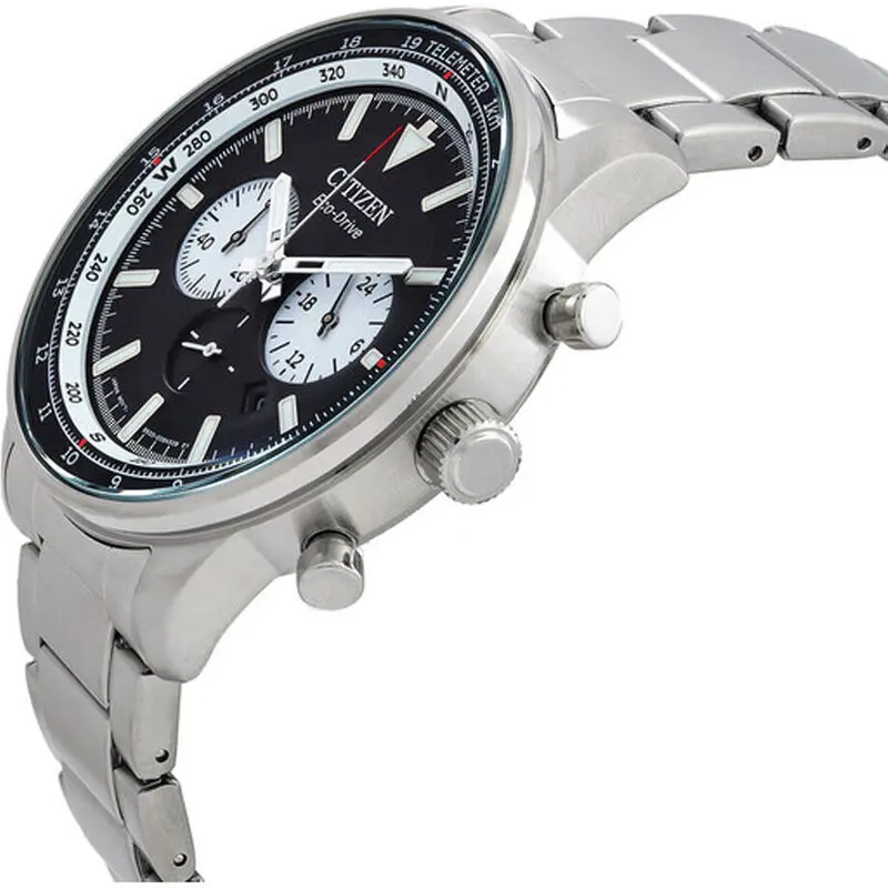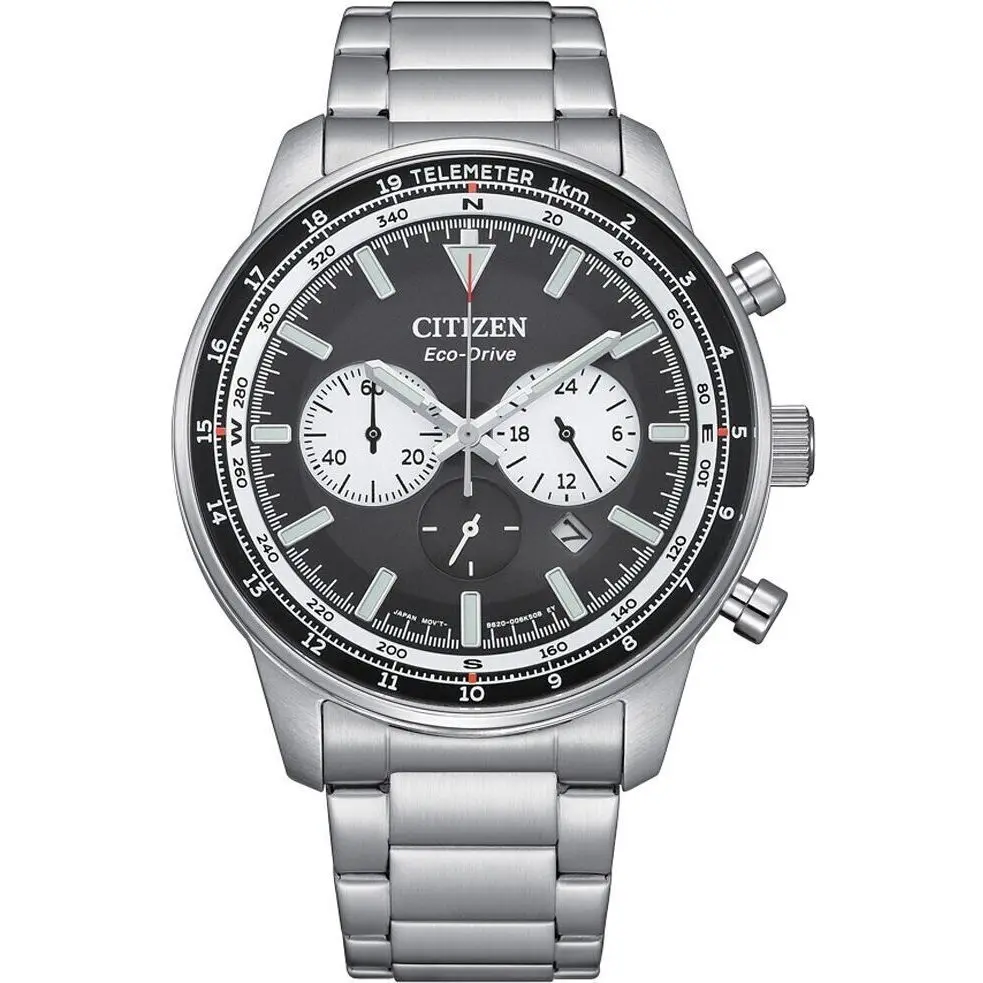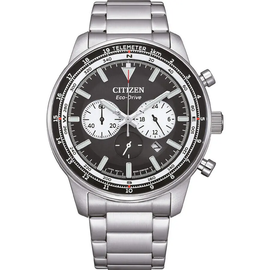 WR: 10 ATM – Case: 44 mm – Gender: Gent – Case Material: Stainless Steel – Strap Material: SS Bracelet – Movement: Eco Drive – Functions: Chronograph – Date – Glass: Mineral – Product Type: Wristwatch – Packaging: Official Box