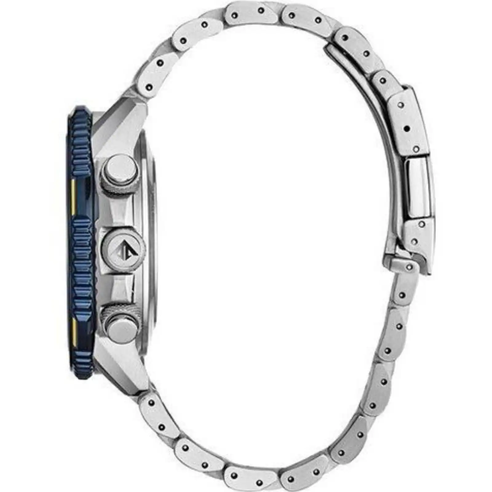 Stainless Steel Case Leather Strap Eco-Drive Movement Caliber: U680 Sapphire Crystal Blue Dial Analog Digital Display Perpetual Calendar 2 Alarms Power Reserve Indicator Chronograph Function Luminous Hands And Markers 12/24 Hours Display Rotating Bezel Screw Down Crown Solid Case Back Deployment Clasp 200M Water Resistance