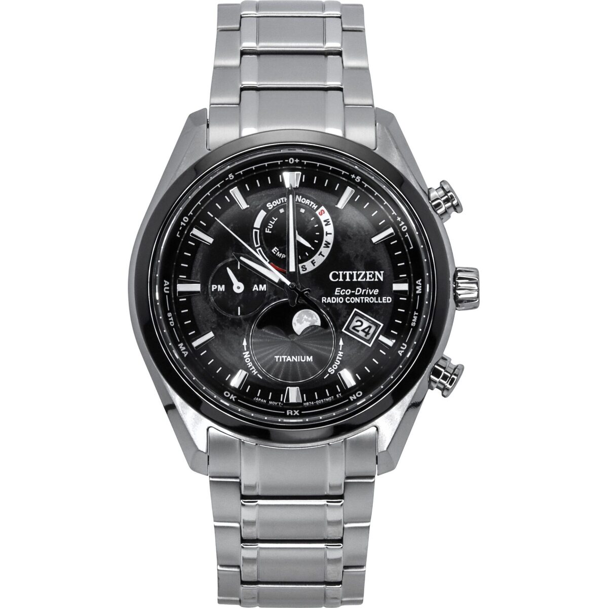 Citizen Tsuki-Yomi Radio Controlled Moon Phase Super Titanium Black Dial Eco-Drive BY1018-80E 100M Men’s Watch
