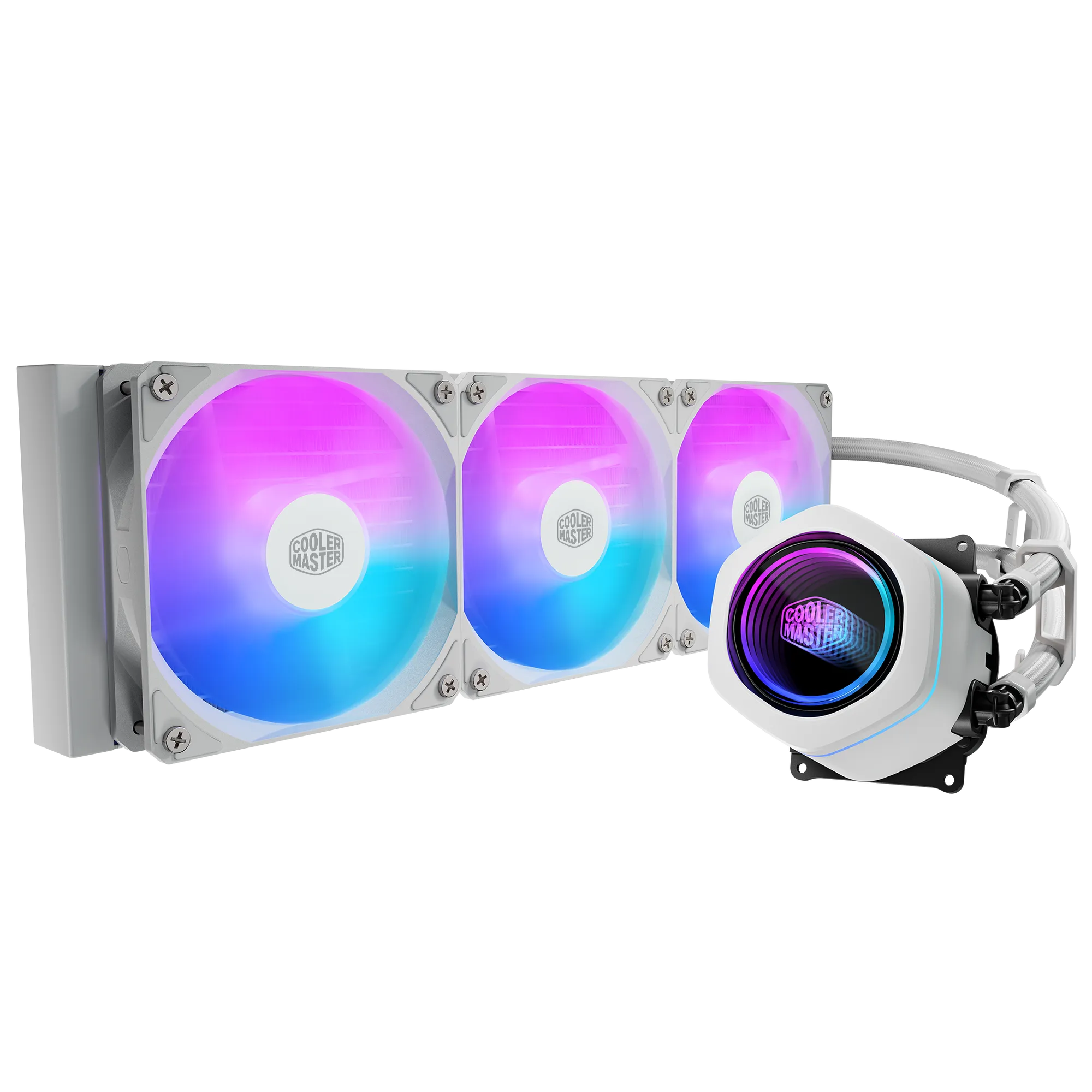 Cooler Master MasterLiquid Core Nex 360 White ARGB; 360mm AIO liquid cooler; strong thermal performance; Dual Chamber Pump