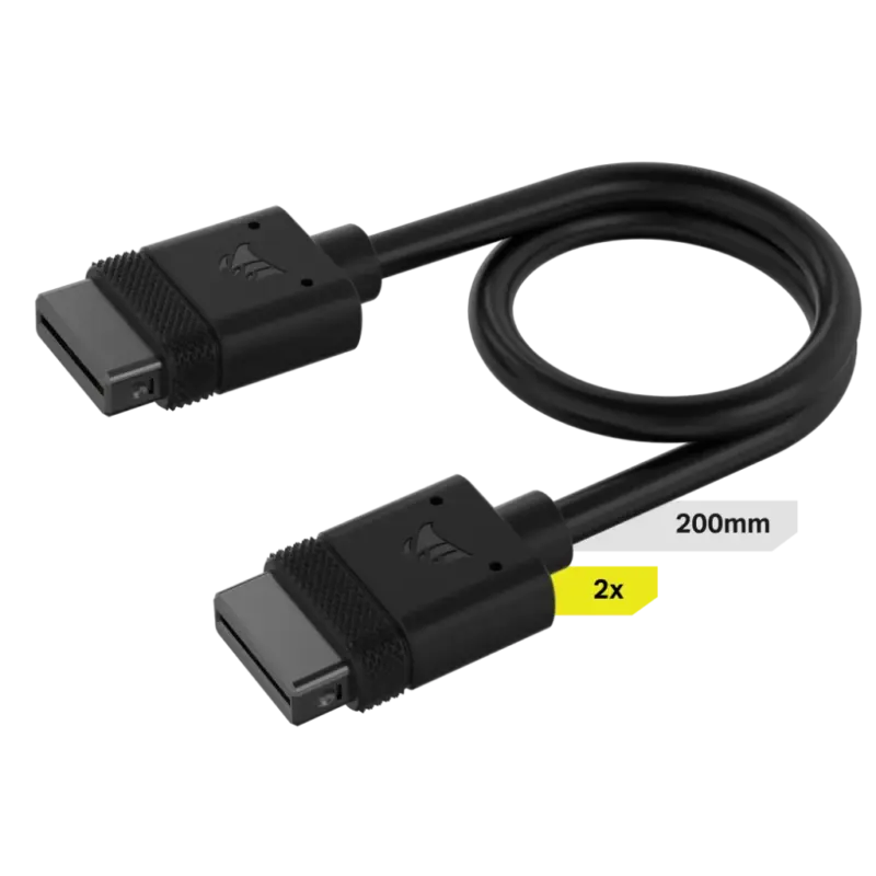 Corsair iCUE LINK Cable; 2x 200mm with Straight connectors; Black