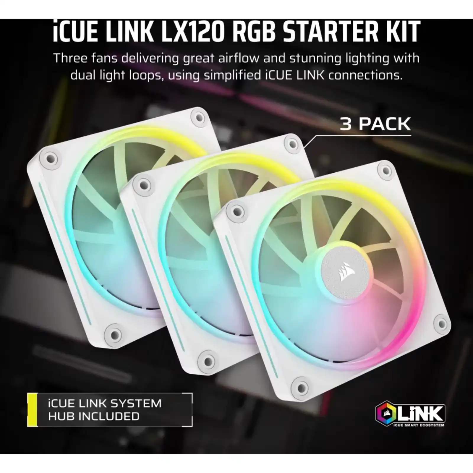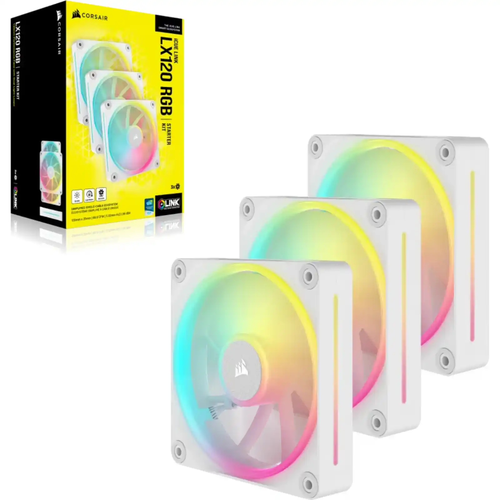 CORSAIR LX RGB Series; iCUE LINK LX120 RGB White; 120mm Fan; Triple Pack