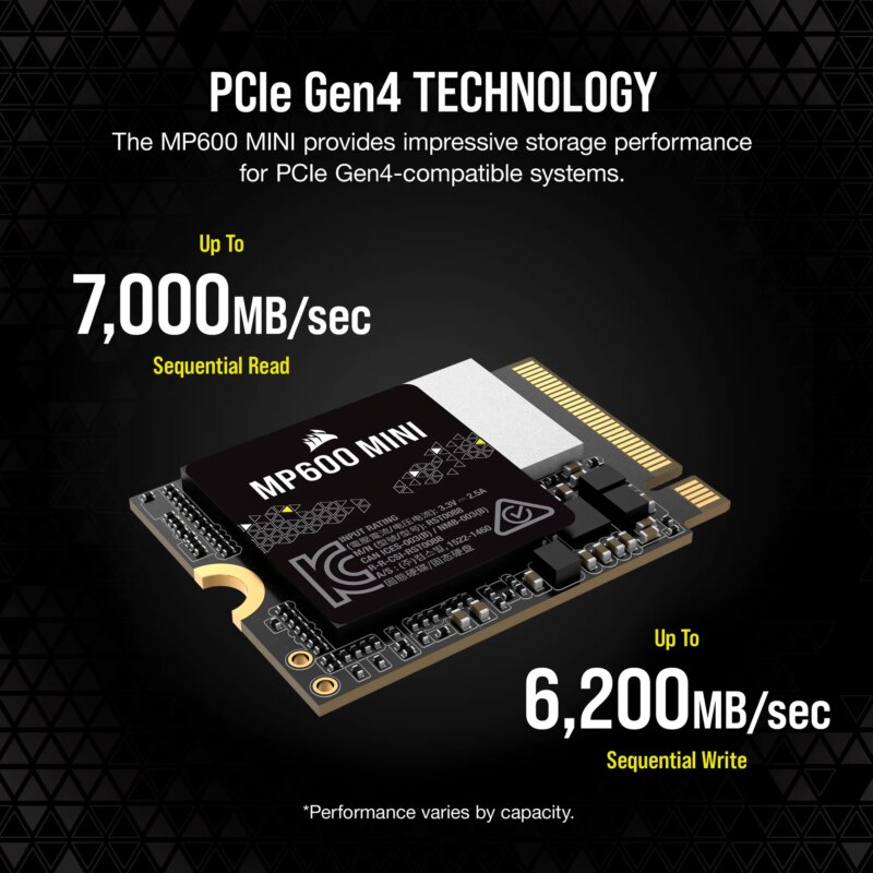 Corsair MP600 MINI 2TB M.2 NVMe PCIe Gen. 4 x4 SSD; Read Up To 7000MB/s; Write up to 6200MB/s