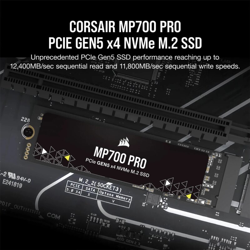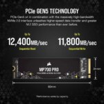 Corsair MP700 PRO 4TB M.2 NVMe PCIe Gen. 5 x4 SSD (no heatsink); Read Up To 12 400MB/s; Write up to 11 800MB/s
