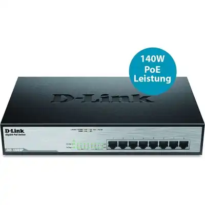 -9% D-Link 8-Ports 10/100/1000Mbps Unmanaged Gigabit POE Switch (Metal Case; 8 x POE ports)