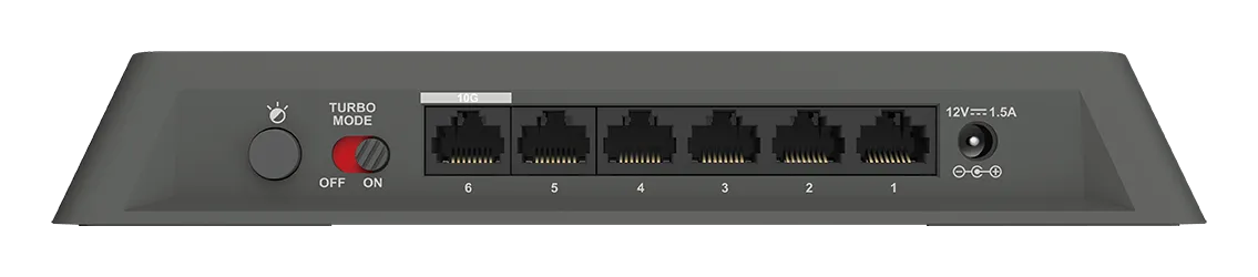 6-Port 2.5GE Unmanaged switch Turbocharged multi-gig switch for work or play; 5x 2.5GE LAN ports; 1x 10 Gbps port for NAS or Upl