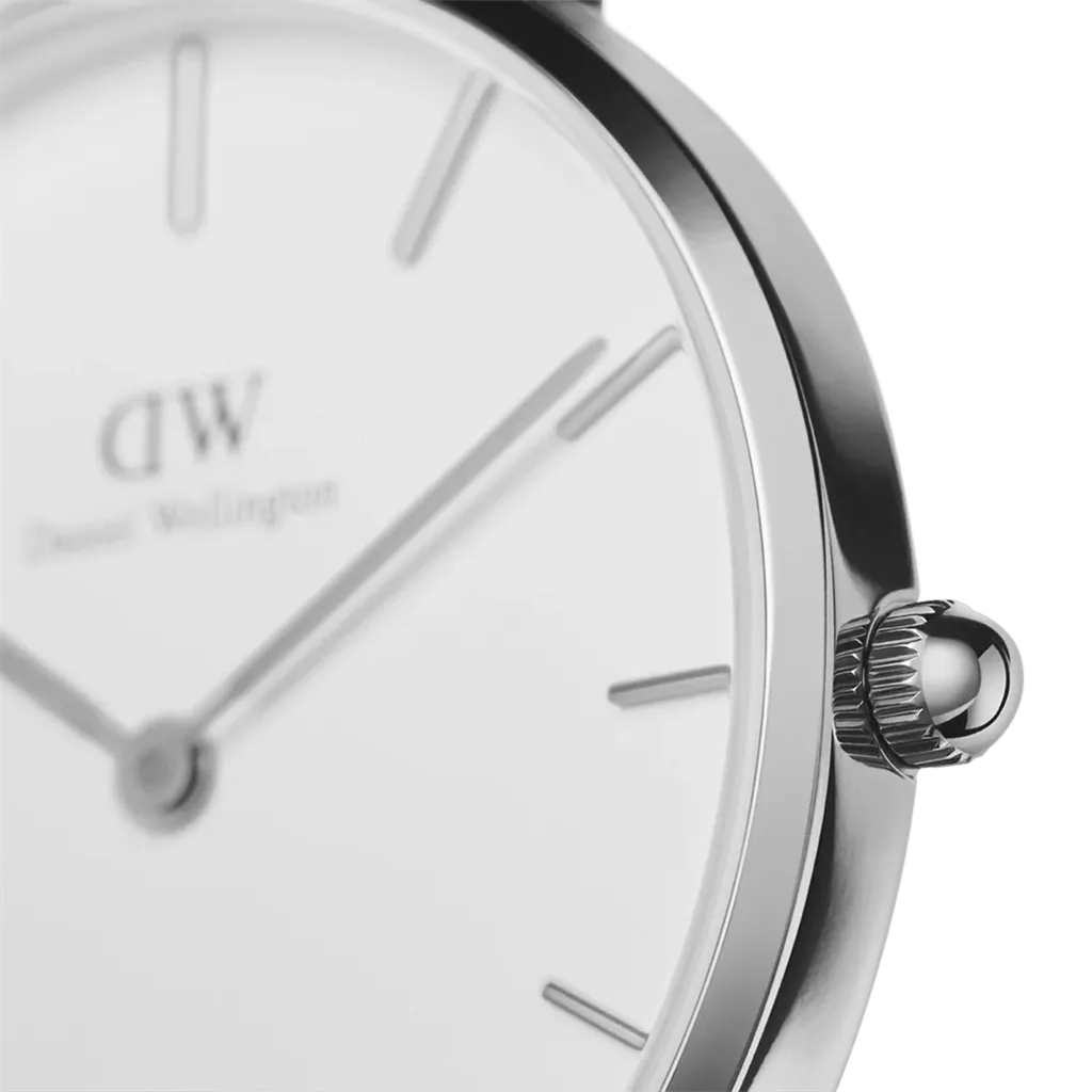 The Daniel Wellington Petite Sterling 32mm (DW00100164) represents a bold take on the classic silver watch. By pairing a high-polished sterling silver-tone exterior with a deep, egshell white dial, Daniel Wellington has created a timepiece that is both contemporary and timeless. This watch is engineered for the woman who demands elegance without the noise of unnecessary complications.
