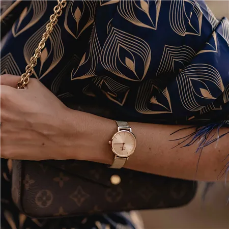 - Pressed Mesh Strap: A glistening 12mm woven steel strap that acts like a piece of fine jewellery.