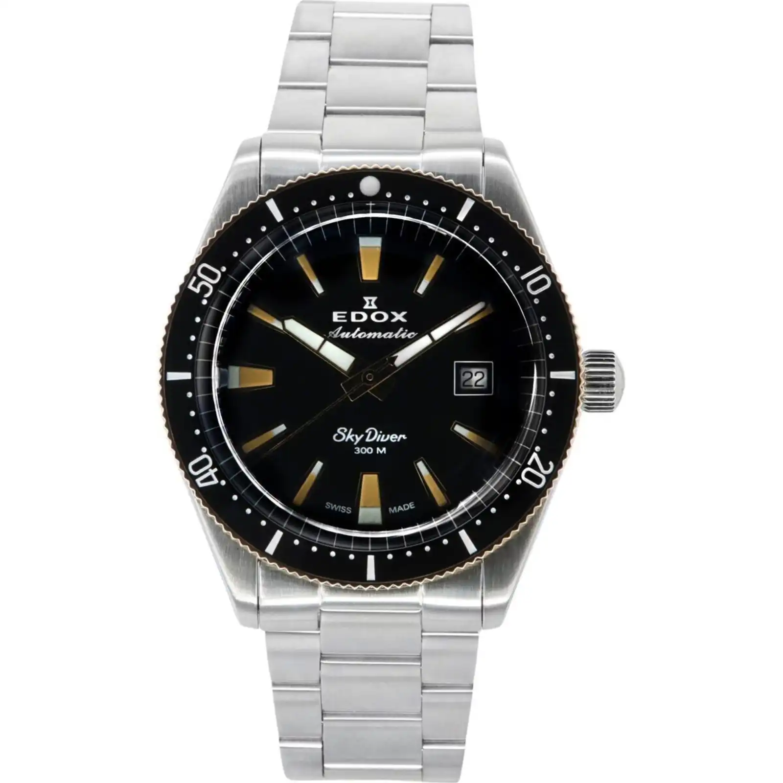 Stainless Steel Case Stainless Steel Bracelet Automatic Movement Caliber: 80 Sapphire Crystal Black Dial Analog Display Luminous Hands And Markers Date Display Rotating Ceramic Bezel Screw Down Crown Screwed Case Back Deployment Clasp 300m Water Resistance