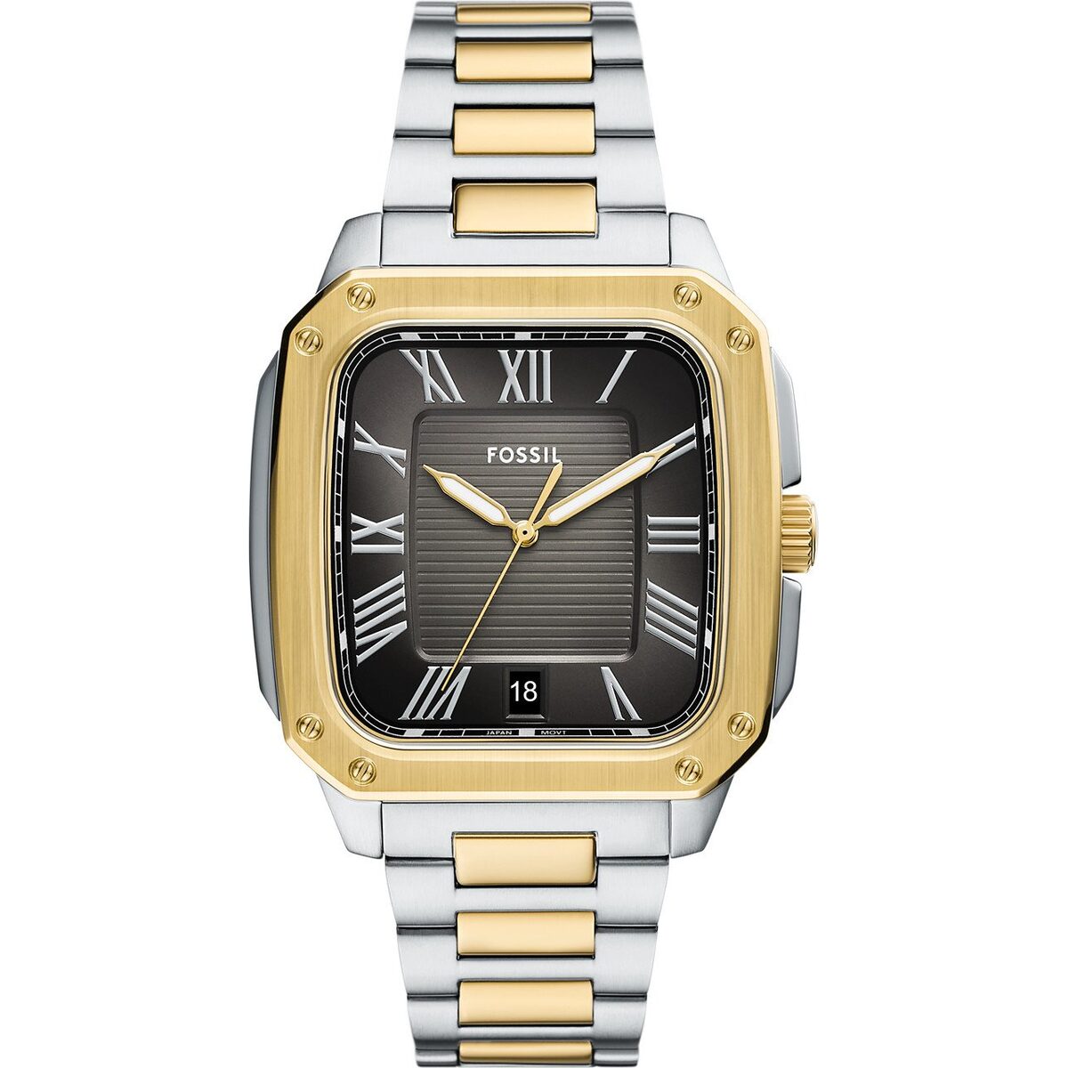 The Fossil Crosby (FS6123) reimagines classic horology through a bold, rectangular lens. Drawing inspiration from vintage Art Deco “tank” watches but scaled for the modern man, this 42mm timepiece is a testament to geometric elegance. The two-tone silver and gold-tone finish creates a sophisticated contrast, making it a versatile accessory for the man who moves seamlessly between the boardroom and social engagements.