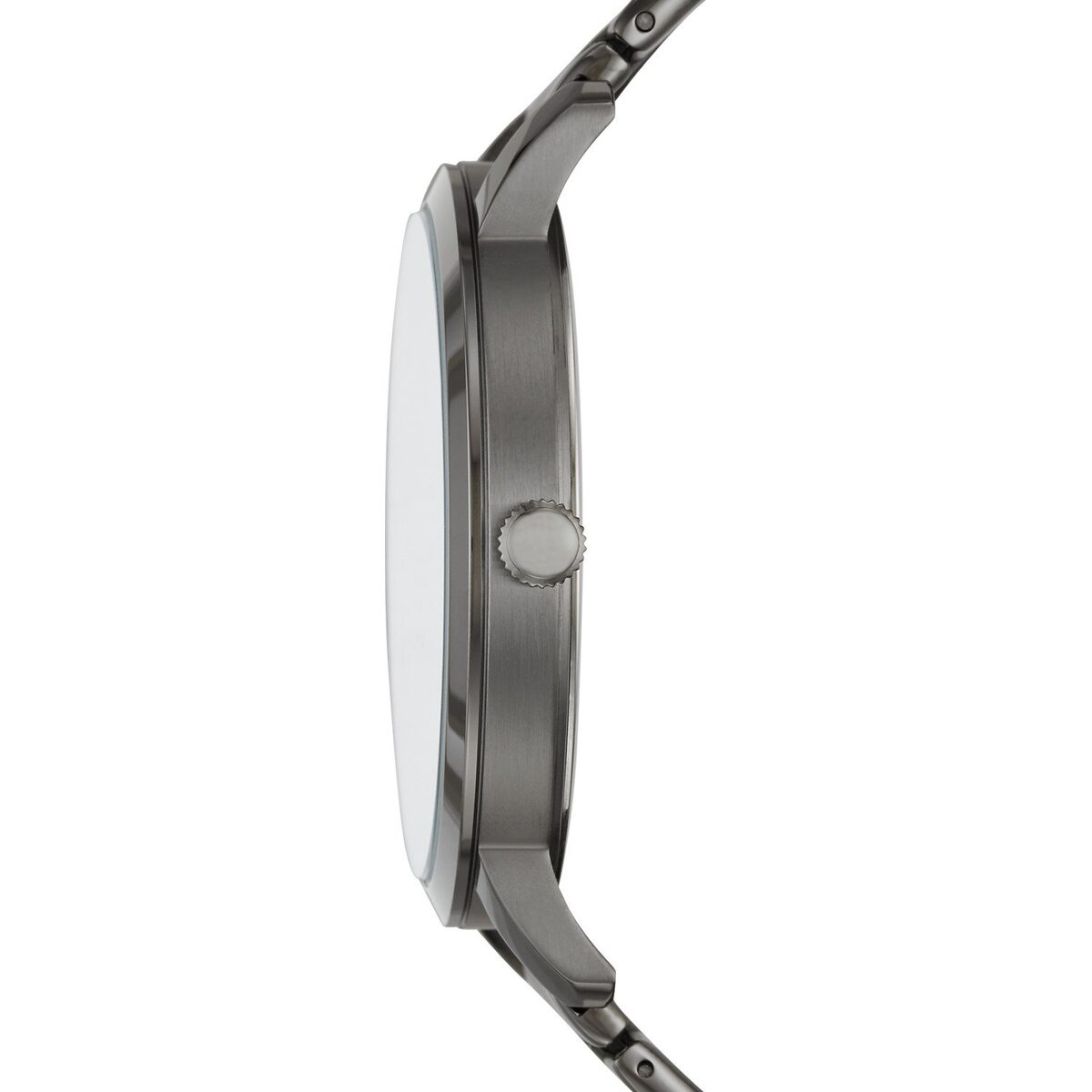 - Band Material: Smoke-plated stainless steel bracelet.