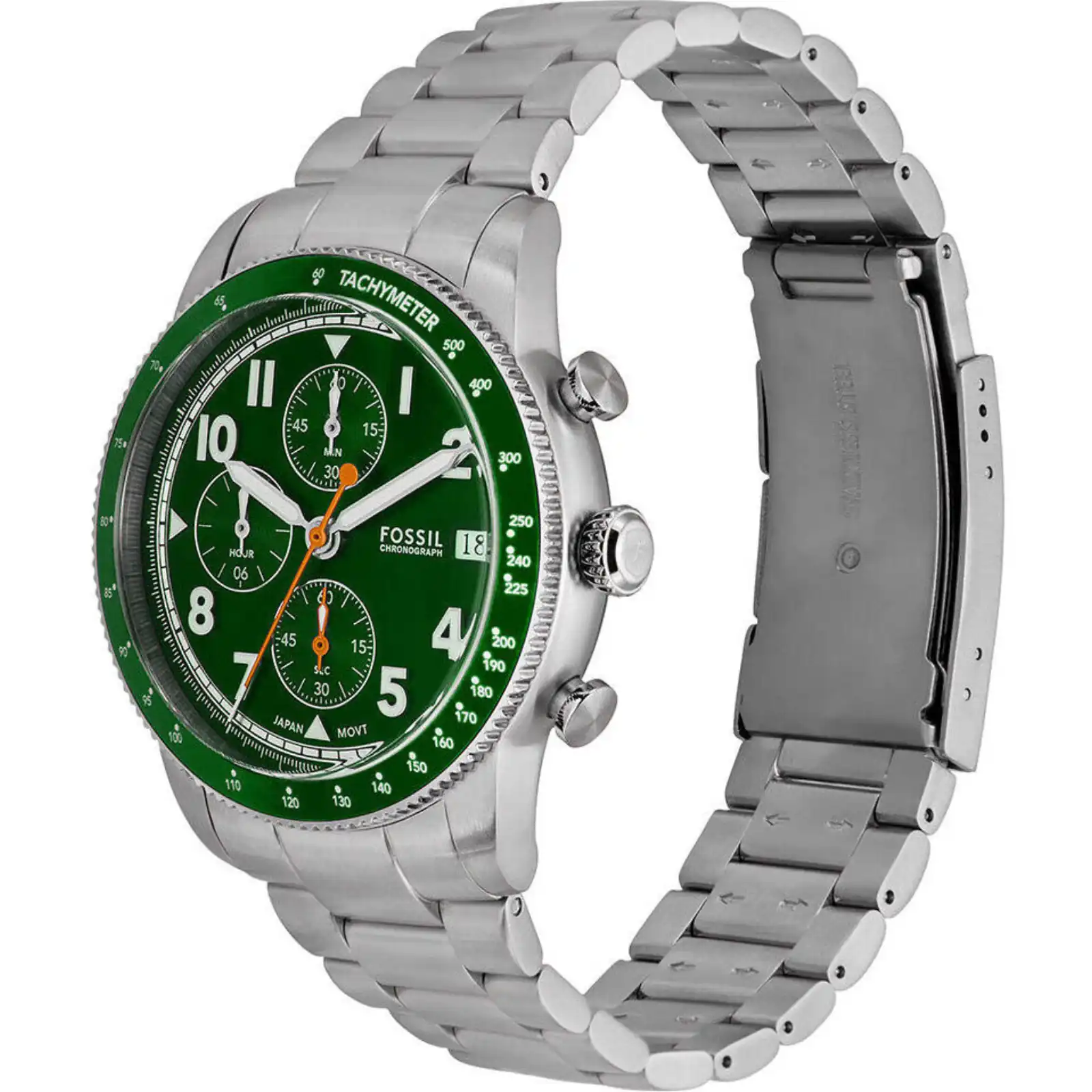 - Racing Green Sunray Dial: A dynamic, light-catching finish accented with vibrant orange racing details for maximum style and legibility.