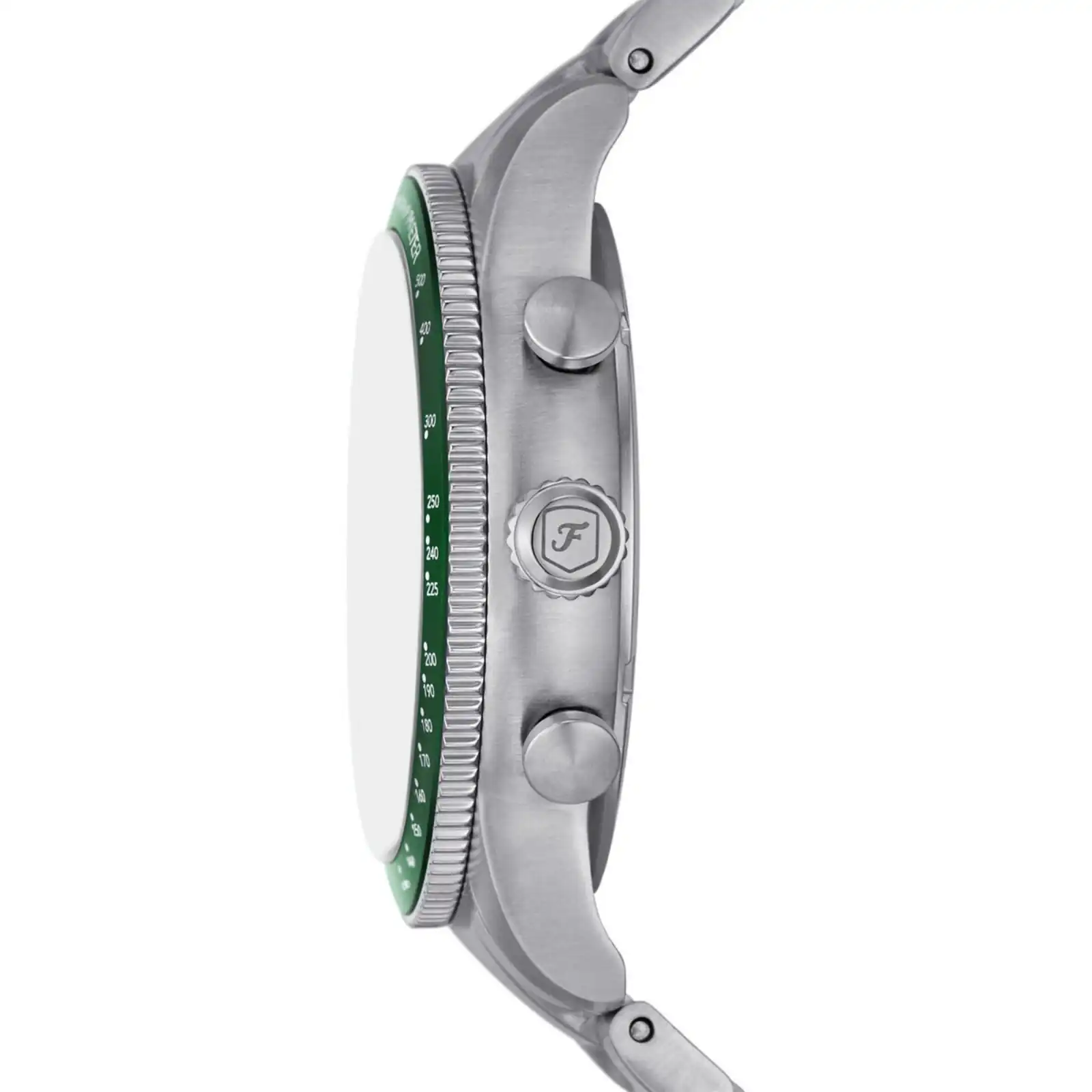 To preserve the mirror-polished and brushed finishes of your Fossil Sport Tourer, we recommend cleaning the case and bracelet with a soft, dry microfibre cloth after each wear. For deeper cleaning of the stainless steel bracelet, a soft brush and lukewarm water can be used to remove dust from between the links. Avoid direct contact with heavy chemicals, perfumes, or saltwater to maintain the integrity of the seals and the brilliance of the steel. While the watch is water-resistant to 50 metres, always ensure the crown is fully pushed in before any contact with water.
