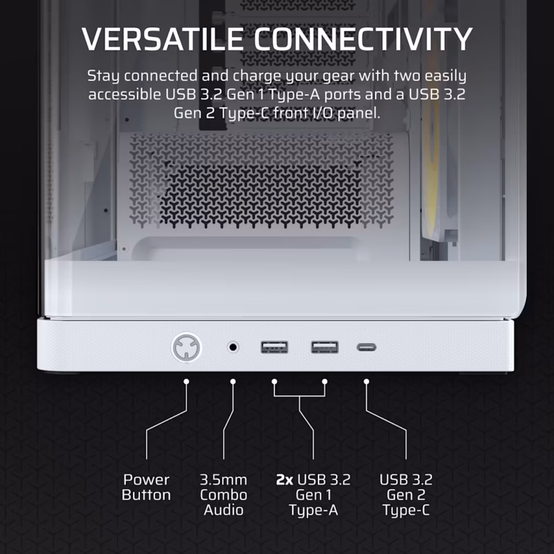FRAME 4500X RS-R ARGB Panoramic Glass Mid-Tower PC Case;includes 3x RS120-R ARGB Fans ; 4x 2.5” ; 2x 3.5” ; White