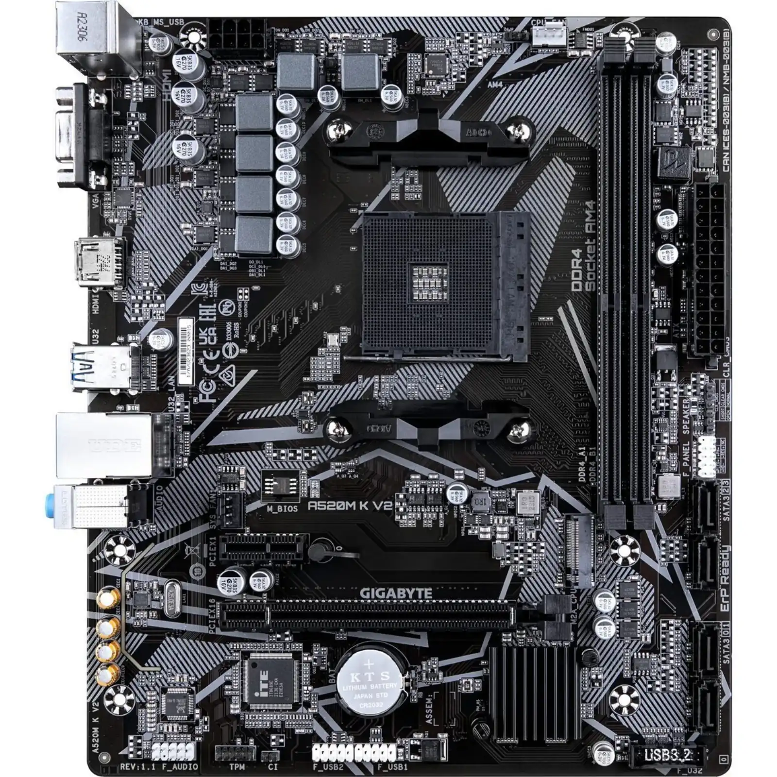 GIGABYTE AMD A520M-K for 3rd/4th/5th Generation AMD Ryzen™ processors; 2x Dual DDR4; 1x M2; HDMI; VGA