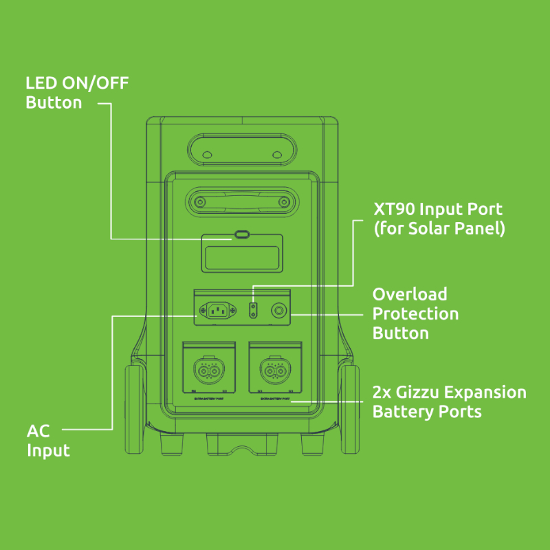 - 2x Gizzu Battery Ports, 11520Wh Max Capacity
