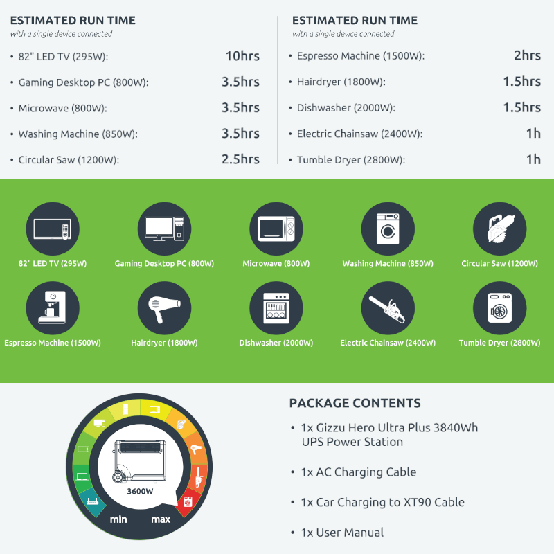 - Gizzu Hero Ultra Plus 3840Wh UPS Power Station x1